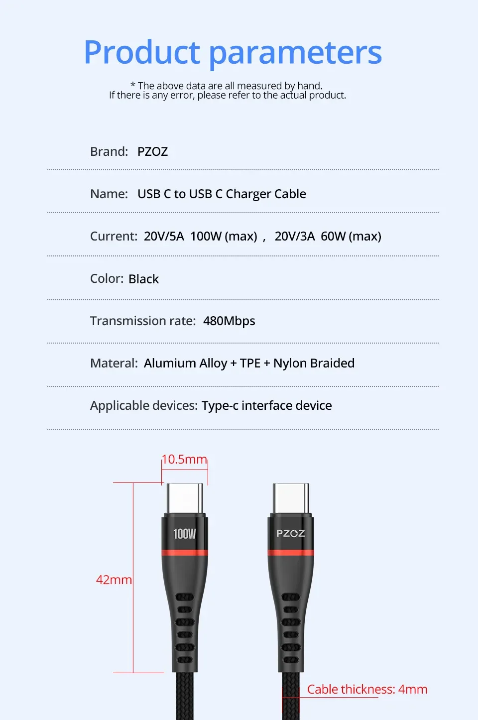 Name: USB C to USB C Charger CableCurrent:20V/5A 100W (max) , 20V/3A 60W (max)