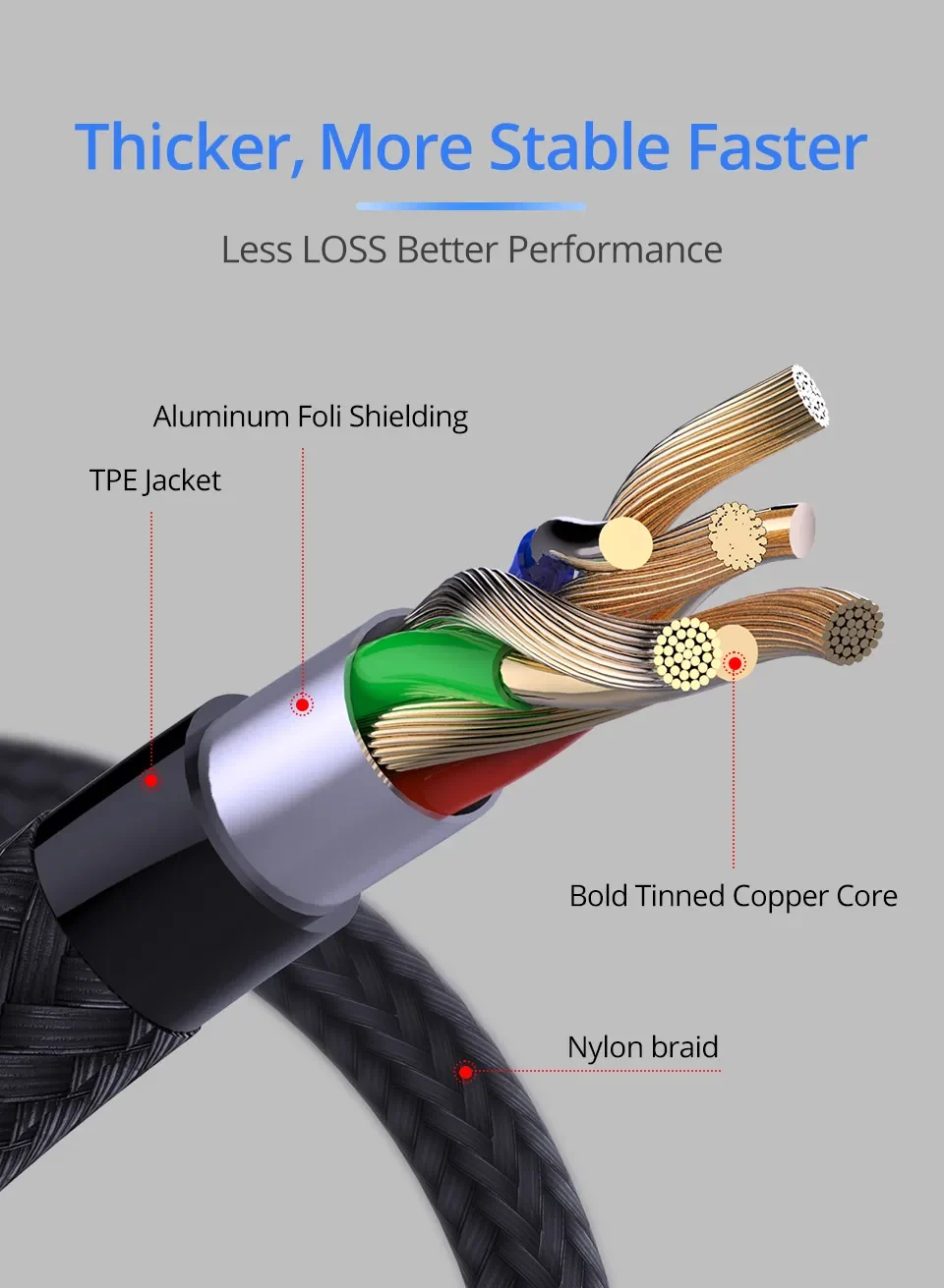 - Material: Aluminum + TPE + Nylon Braided Wire