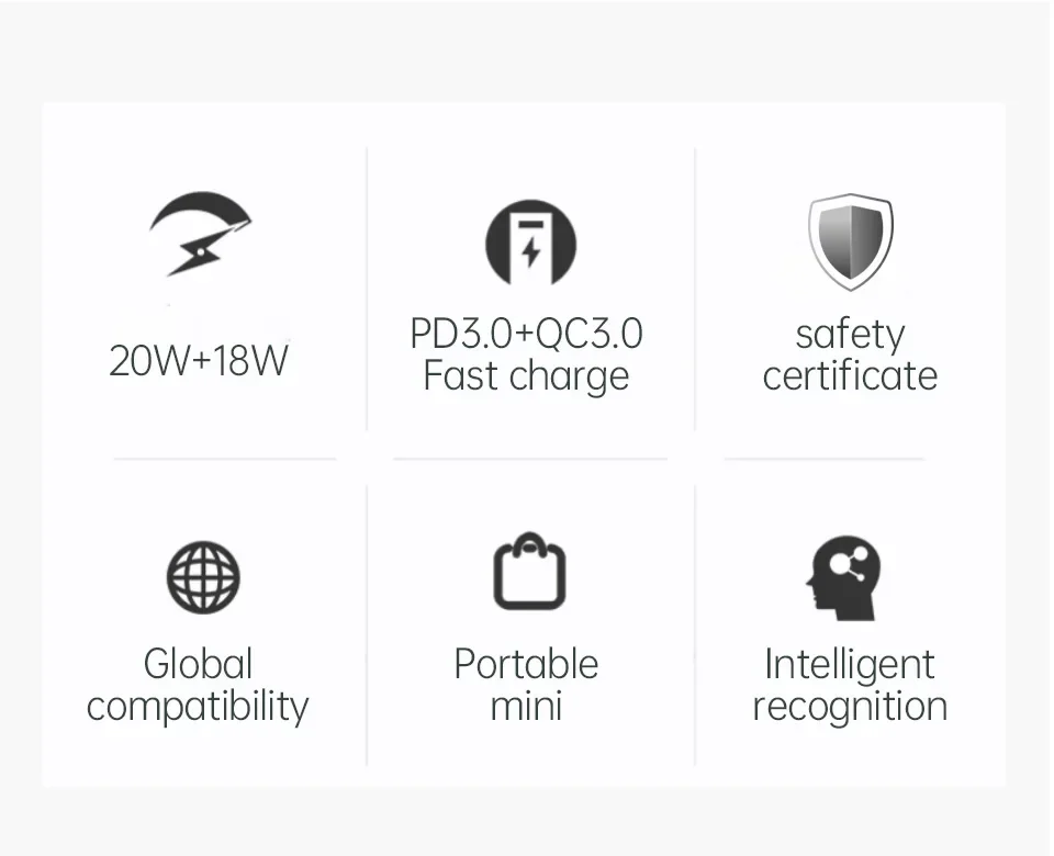 USB-A Output: 5V/3A, 9V/2A, 12V/1.5A 18W Max