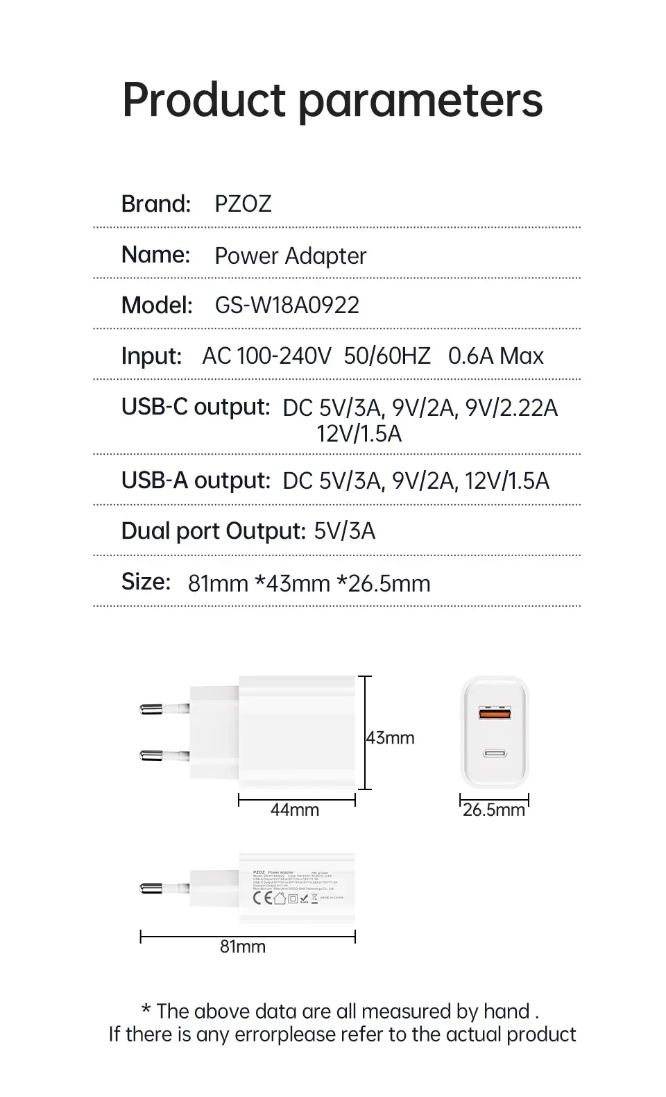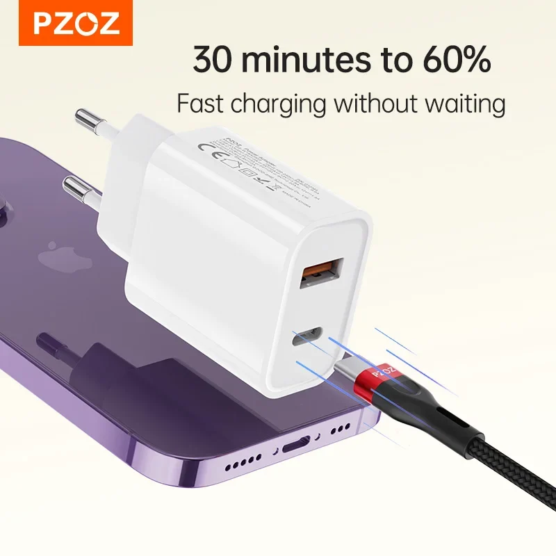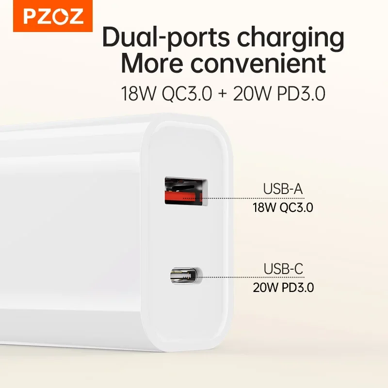 PZOZ 38W USB Type C Charger Fast Charging For iPhone 15 14 13 12 Pro Max Plus PD 20W QC 3.0 Phone Quick Charge Dual Travel Plug
