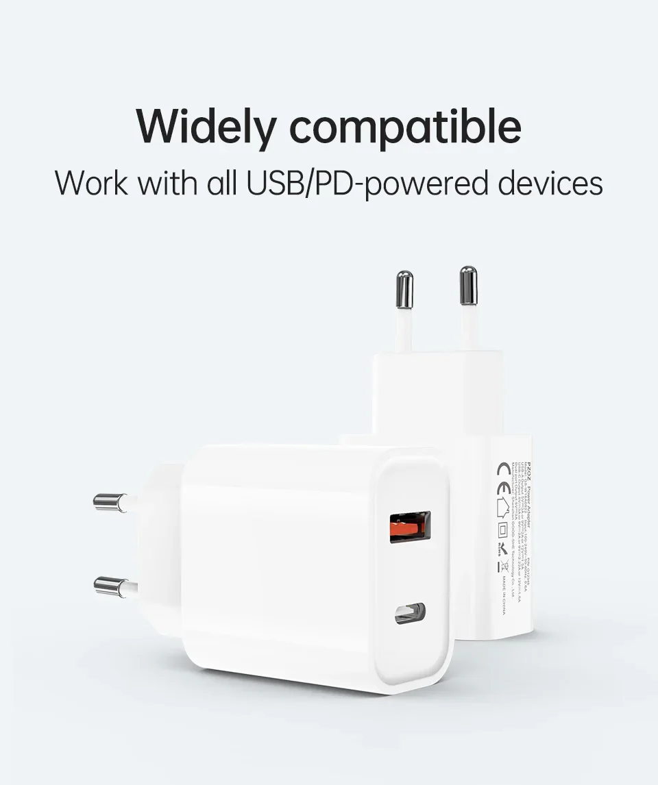 Dual Port USB C Charger PD 25W Fast Wall Charger adapter For Xiaomi Samsung Huawei iPhone 12 11 Pro Max QC 3.0 Type C Cargador