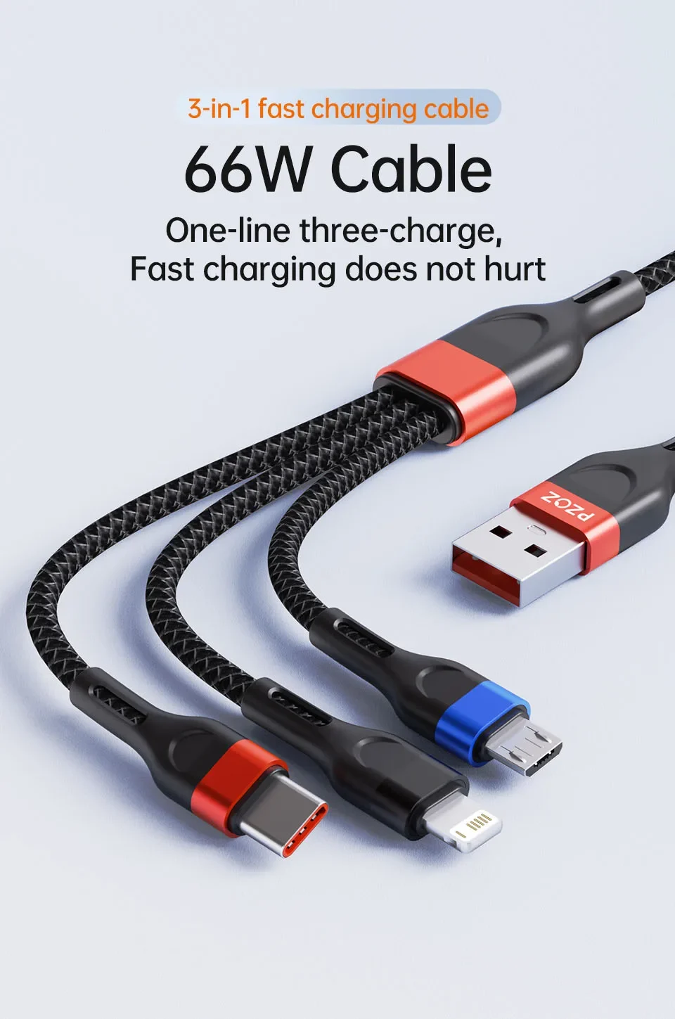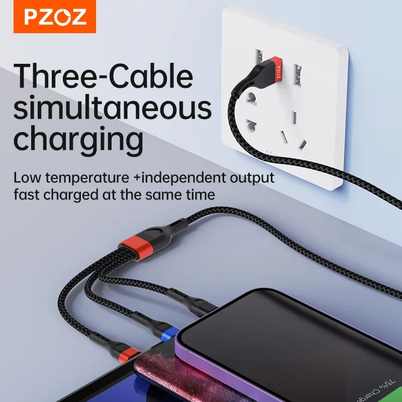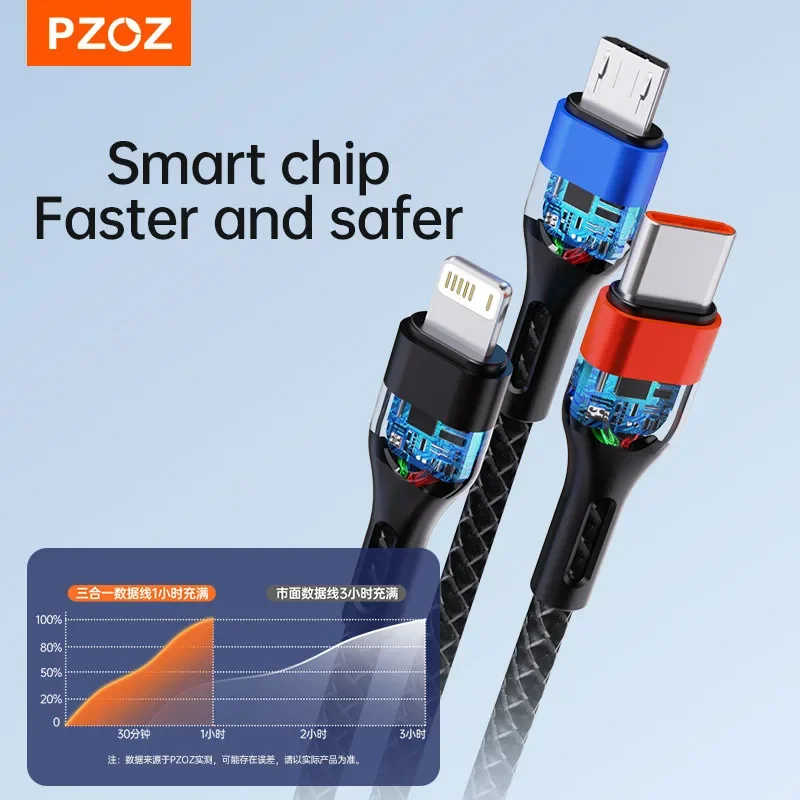 PZOZ 66W 3 in 1 6A USB Type C Cable Super Fast Charging Micro USB C Cable For iPhone Samsung Xiaomi Huawei Phone Cord Charger