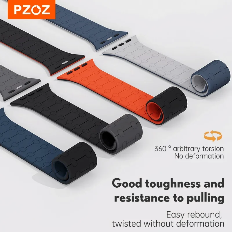 PZOZ Silicone Watch bands For Apple Watch 8 7 6 SE 5 4 49mm 44mm Chain Magnetic Wrist Strap For iWatch Series Wristband Strap