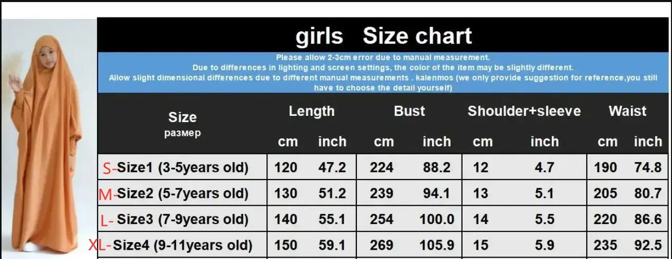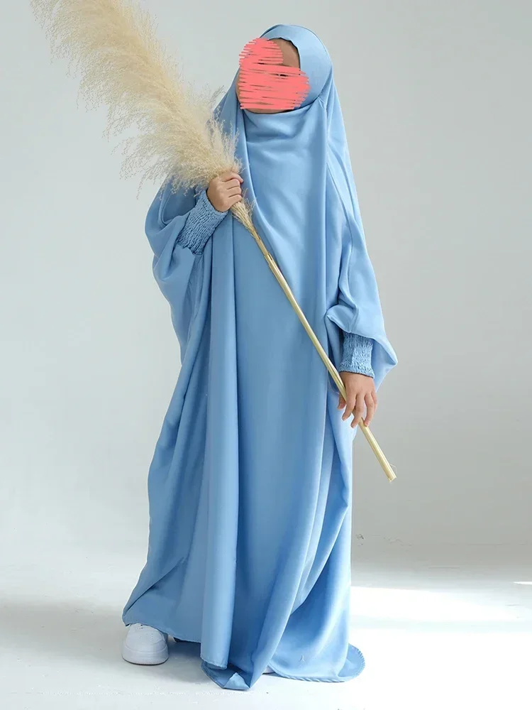 Ramadan Muslim Dress Girls Kids Prayer Garment Hijab Dress Child Hooded Abaya Full Cover Niqab Islam Dubai Eid Robe 2026 Jilbab
