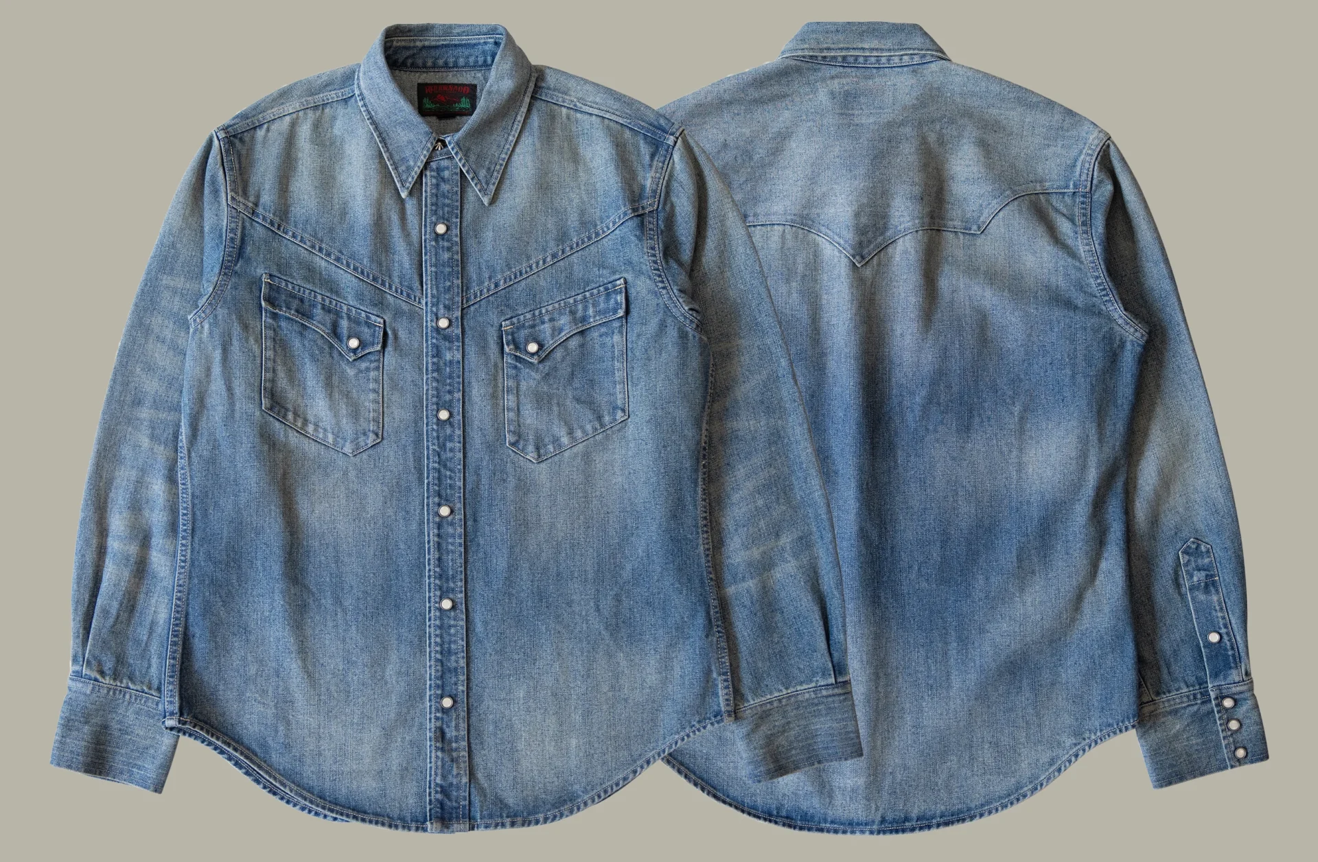 أنت تشاهد الآن:Red Tornado Vintage Denim Western Shirt Pearl Snap Cowboy Ranch Work Shirt for Men