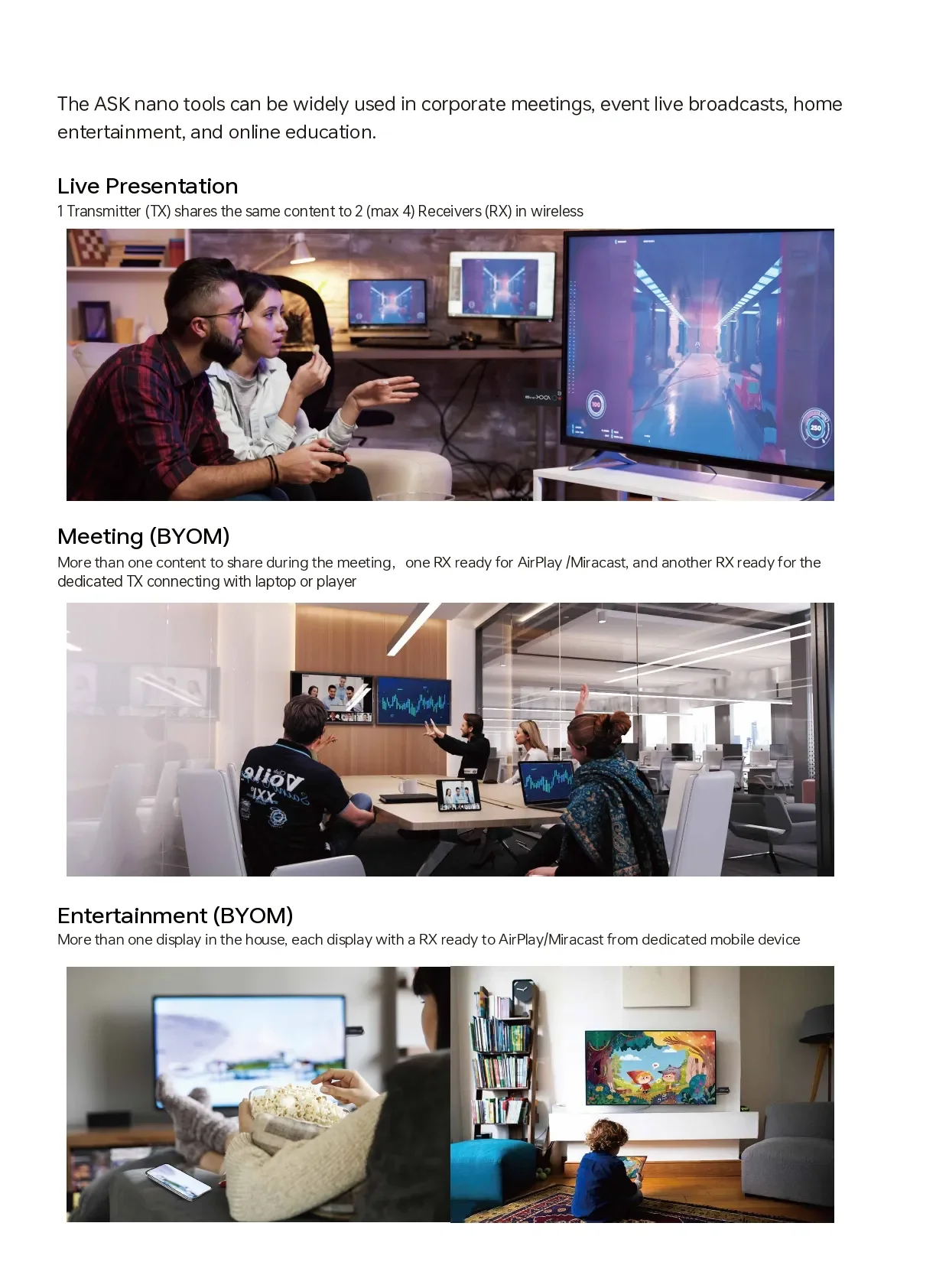 and reception. Driver free as simple HDMI mirror or projected displays, ASK nano 4K enables remote display of any