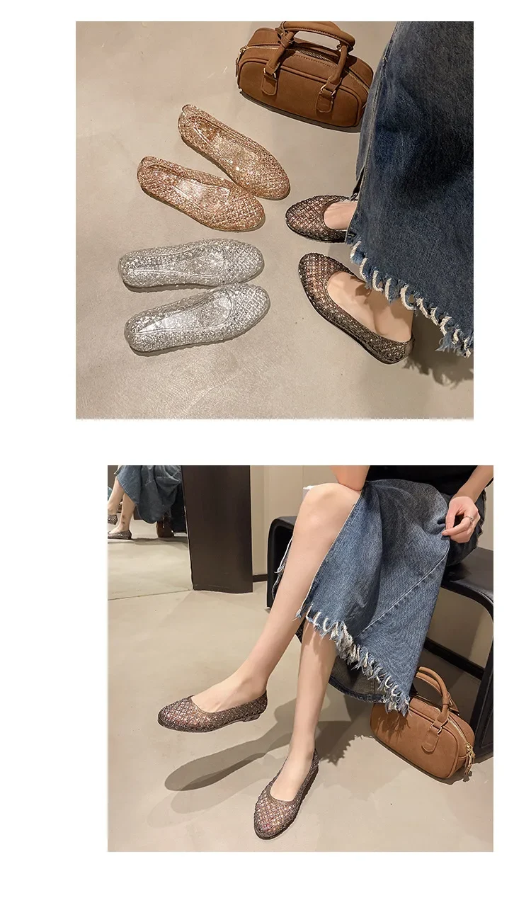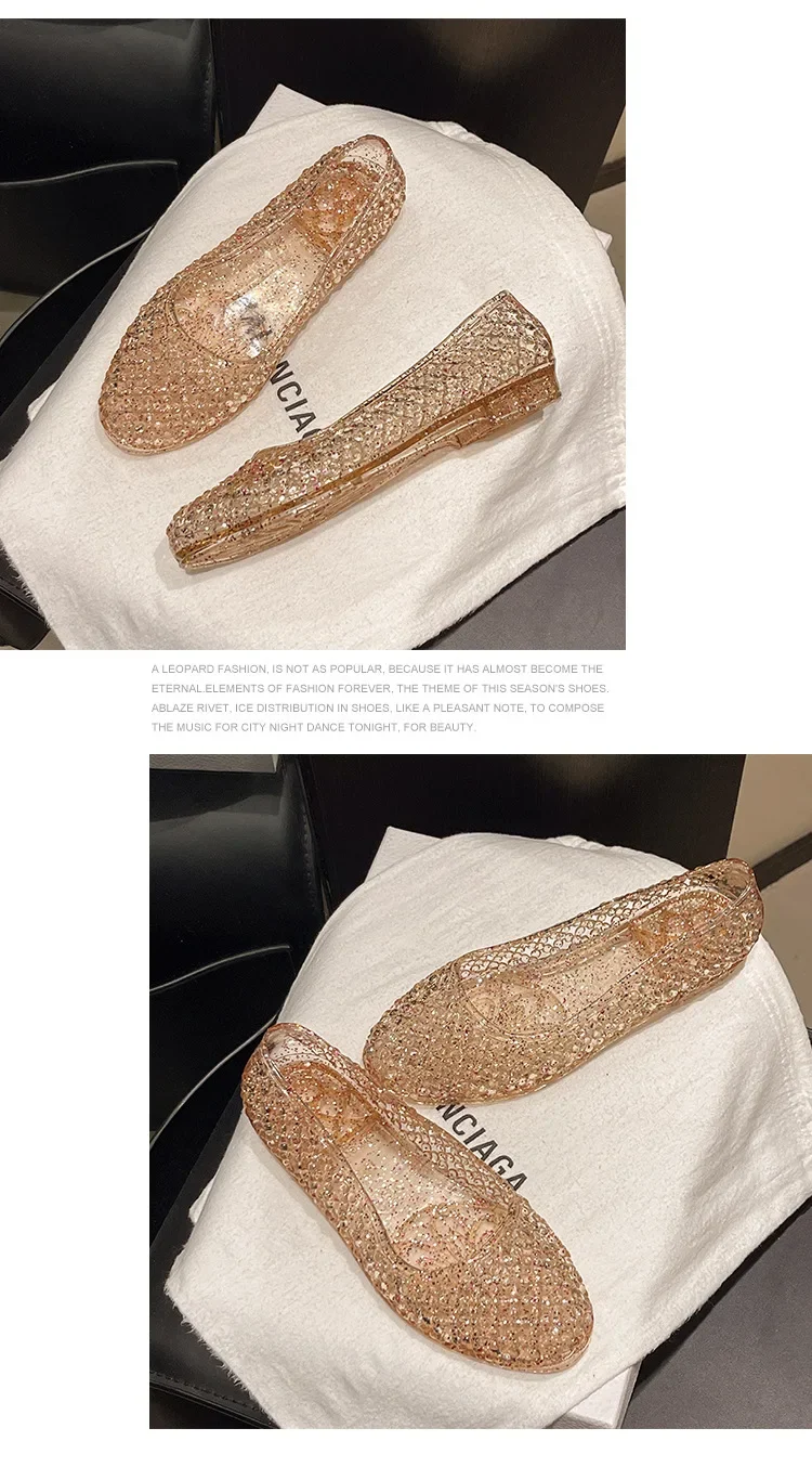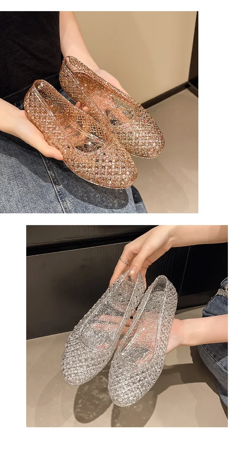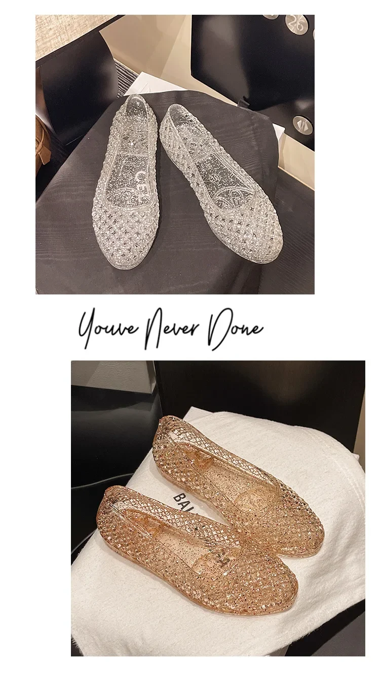 Sandals for Women Sequin Flat Ladies Sandals Ladies Beach PVC Jelly Shoes Women Shoes Sasual Shiny Solid Sandalias Femininos