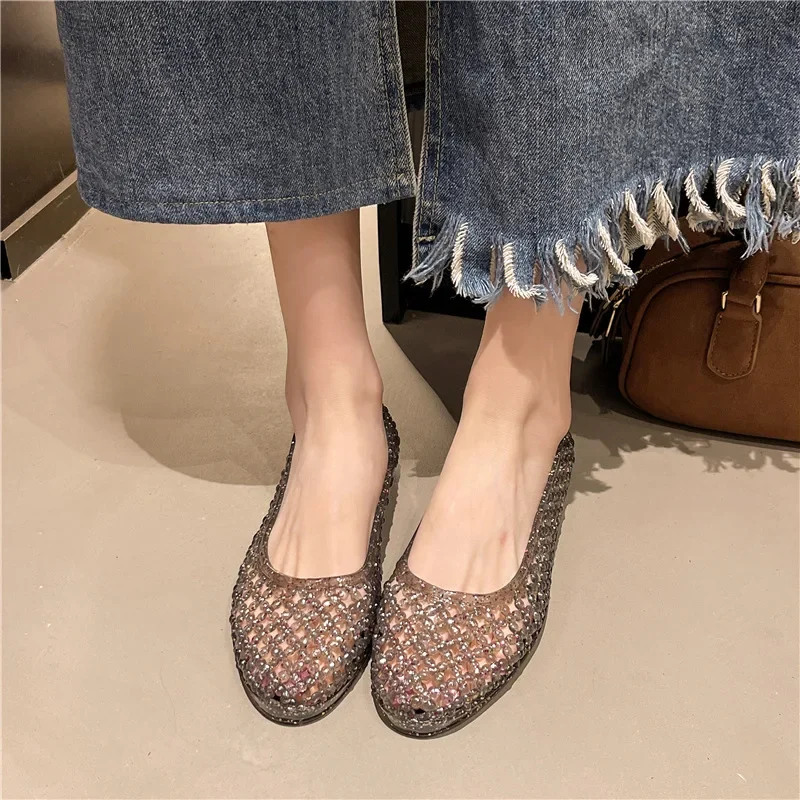 2025 Women’s New Flat Sandals with Hollow PVC Breathable Summer Outerwear Baotou Bag and Casual Jelly Sandals