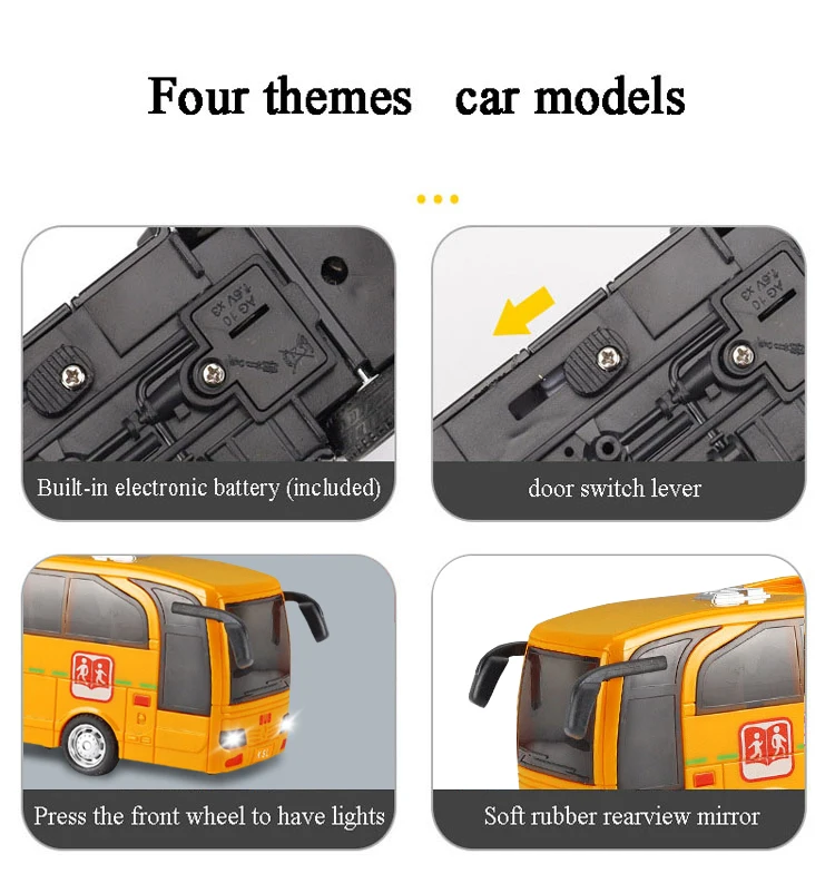 School Bus Toys Cars Plastics Little Cars City Bus With Sound And Light Up Friction Powered Cars Play Toys Gift For Kids