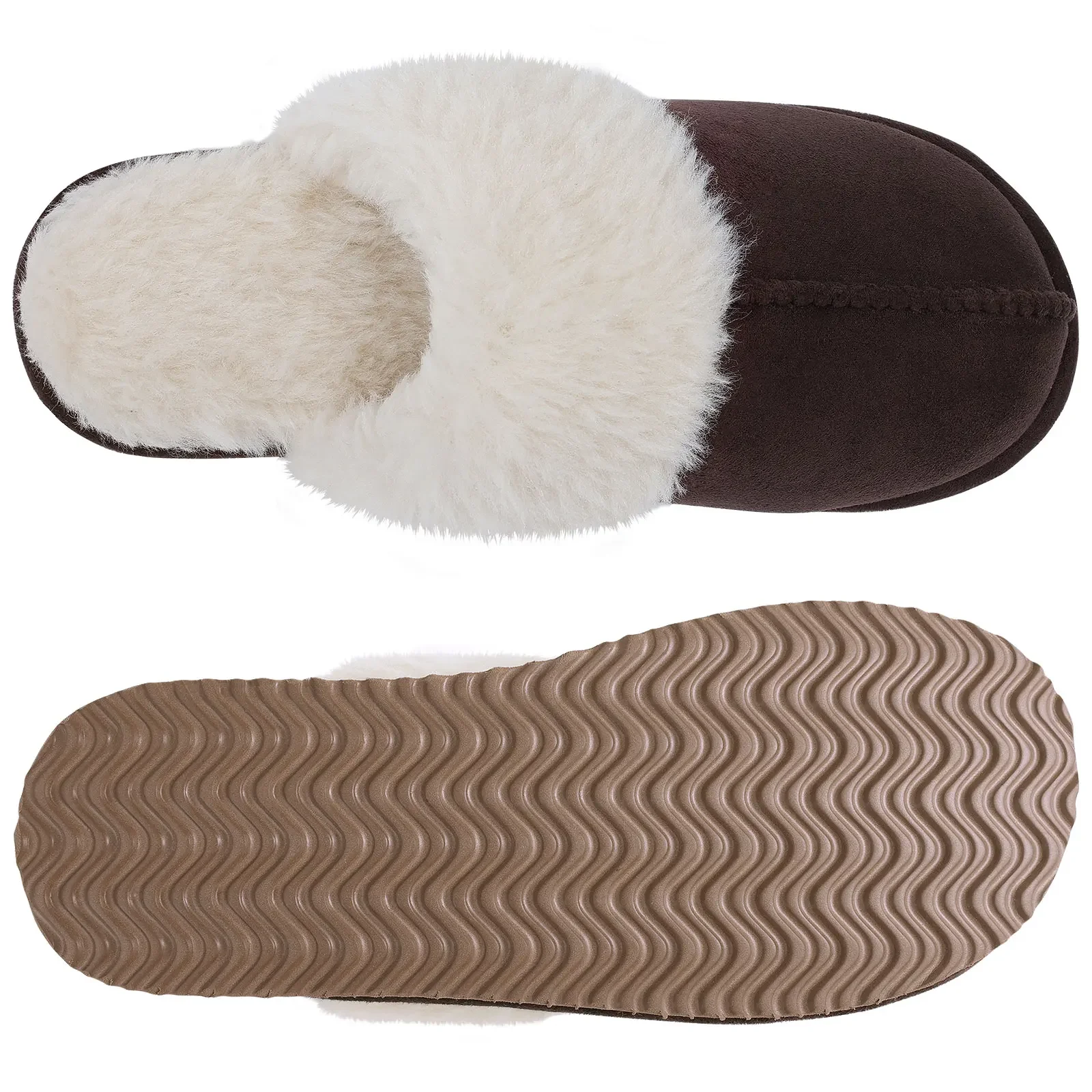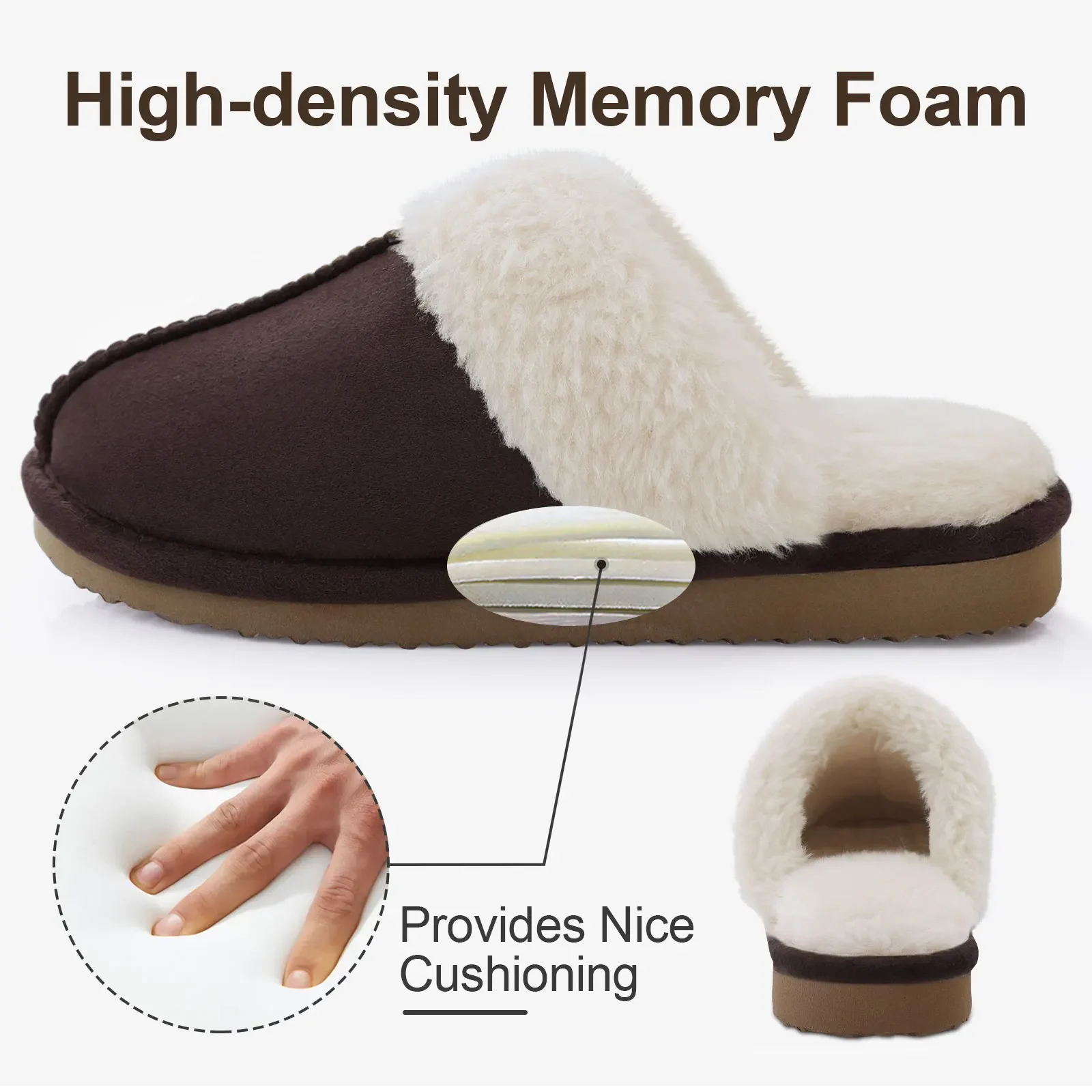 Shevalues Winter Fur Slippers For Women Fluffy Fuzzy House Slippers Memory Foam Plush Slippers Indoor Non-slip Cotton Slippers