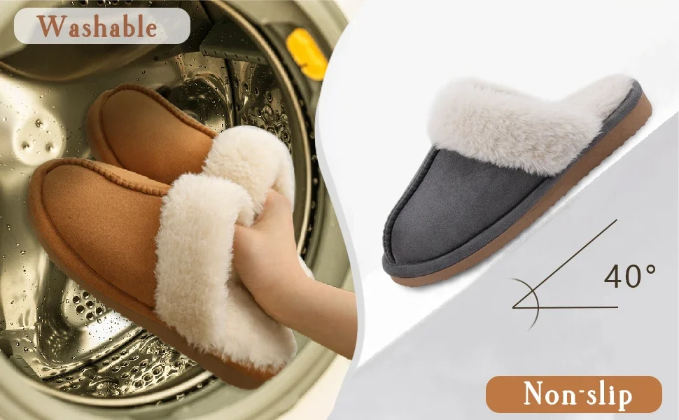• Machine washable: Machine wash in cold water, leaving your hands free. After natural drying, it looks like new! High-quality and durable faux fur women’s slippers for long-lasting use.