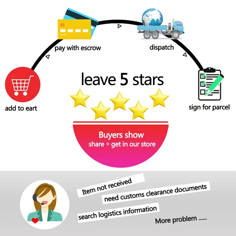 1. Package ship as soon as possible after your payment,Post air mail will take around 30-45days, some coutry will takes 35-60 days,EMS 7-20days. 2. Generally, Most orders are processed within 5-7 business day.But delay delivery would happen as our storage change every moment.And sometimes it would be longer because of the bad weather,a waste of time in customs clearance.Thus please wait patiently when you do not receive your item on time.If you don’t receive the item within thirty days,please contact us,and then we will help you track it. 3.International transportation is need a long time,please be patient, we will Always pay attention to latest dynamic information, the parcel may be accidental damage, including crushed,and even lost, please understand! If you didn’t receive your package,or the parcel is damaged,or have the defective products, please provide us some pictures as evidence, if the fact is true, we will resend a new product to you. Any requirements please tell us before the parcel sending,because once parcel sending,we can’t change anything!