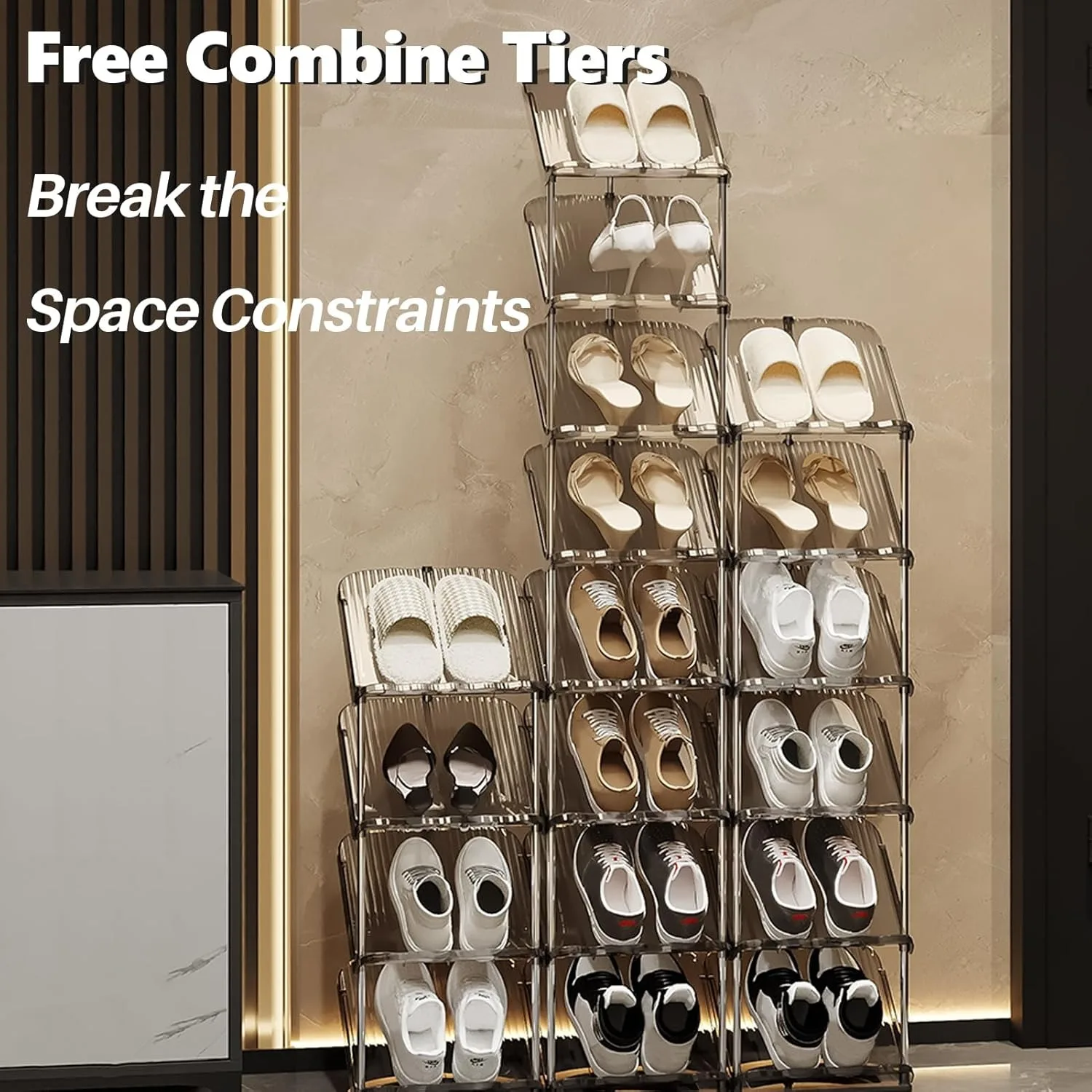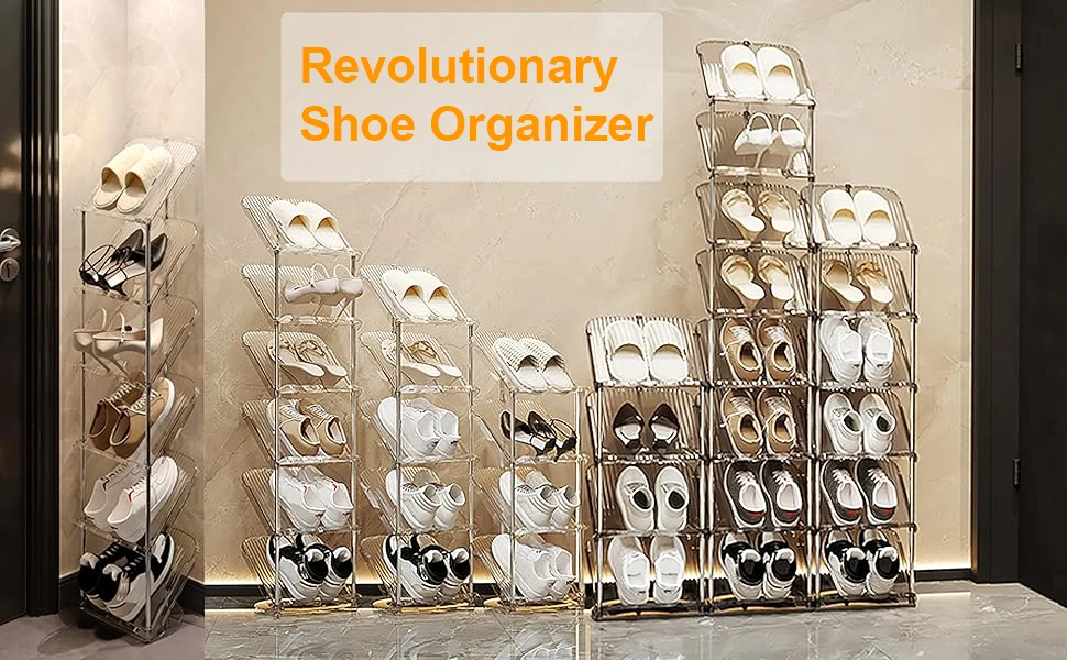 Sloping Narrow Shoe Rack Free Standing Vertical Shoes Racks for Small Spaces and Corner, Shoe Storage Organizer for Entryway