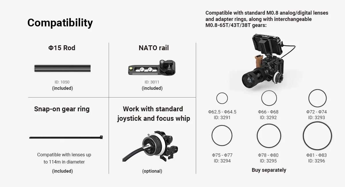 3: Compatible with Φ52/55/58/62/67/72/77/82/86-95mm adapter rings