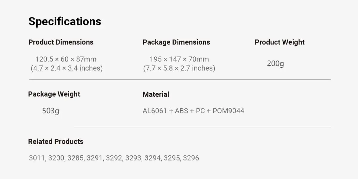 Package Weight: 108g±5g (no adapter ring and filter tray)