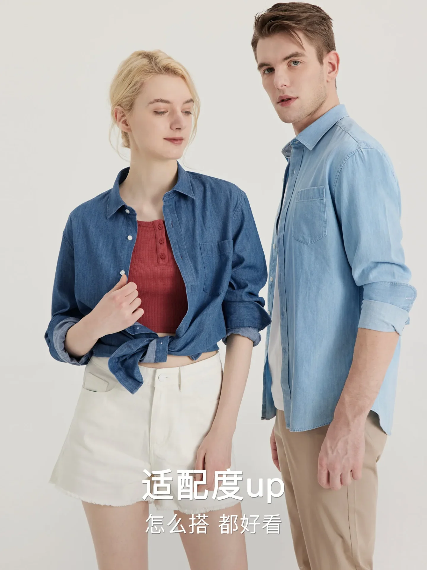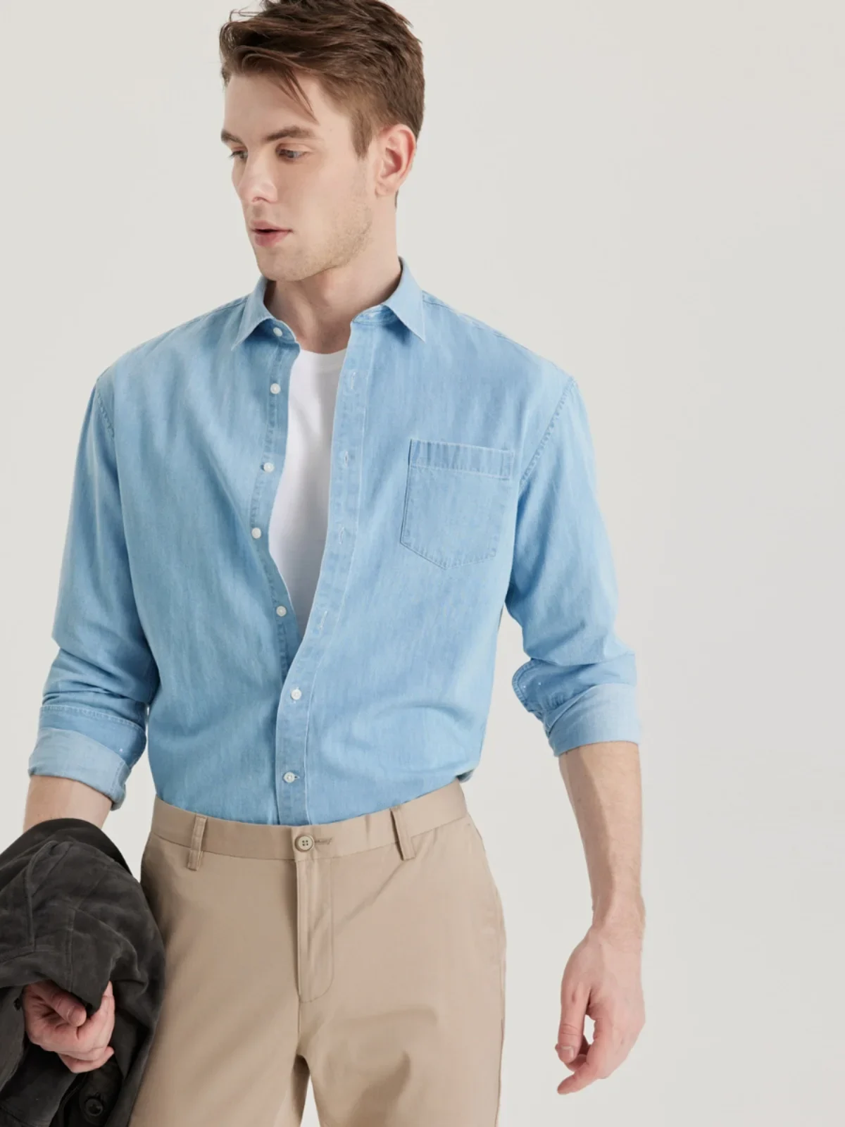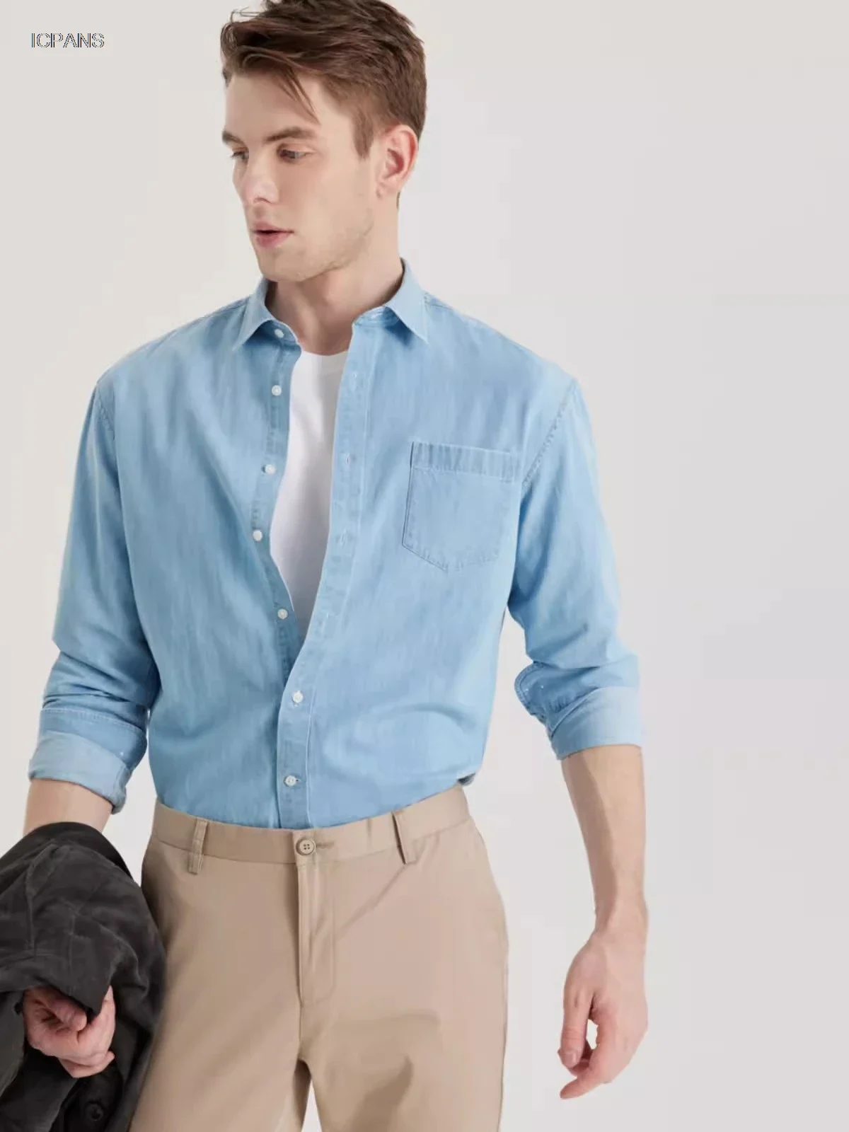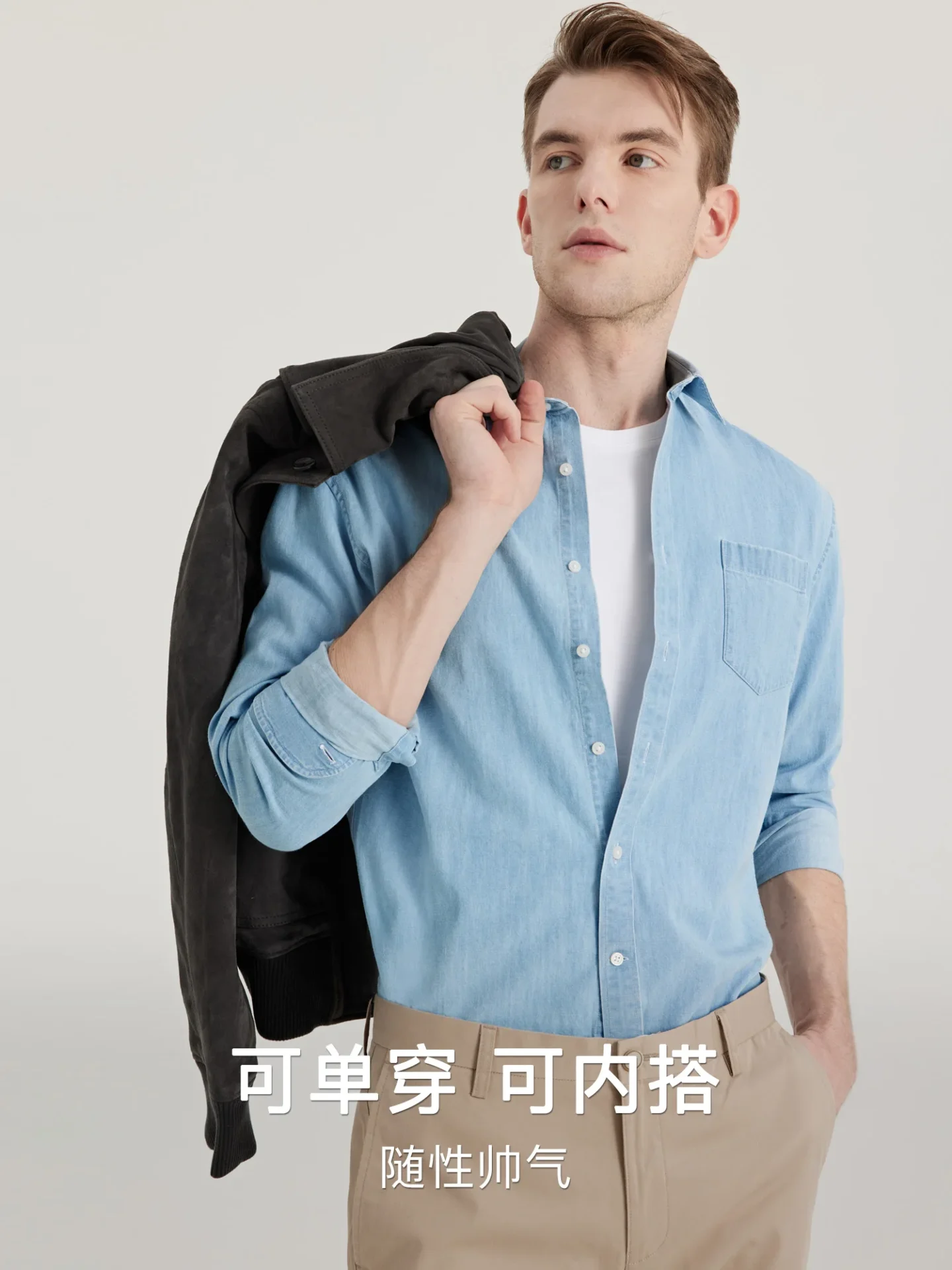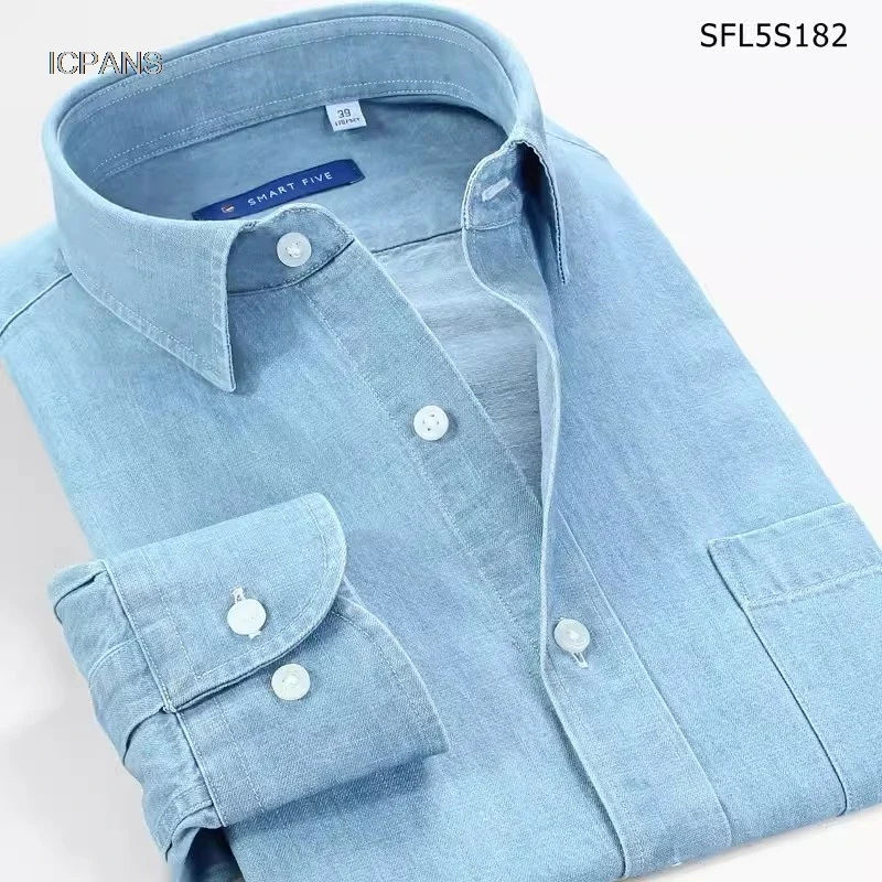 Smart Five Denim Casual Mens Shirts Light Blue Spring Summer Thin Camisa Long Sleeve Shirt Cotton For Male Slim Fit