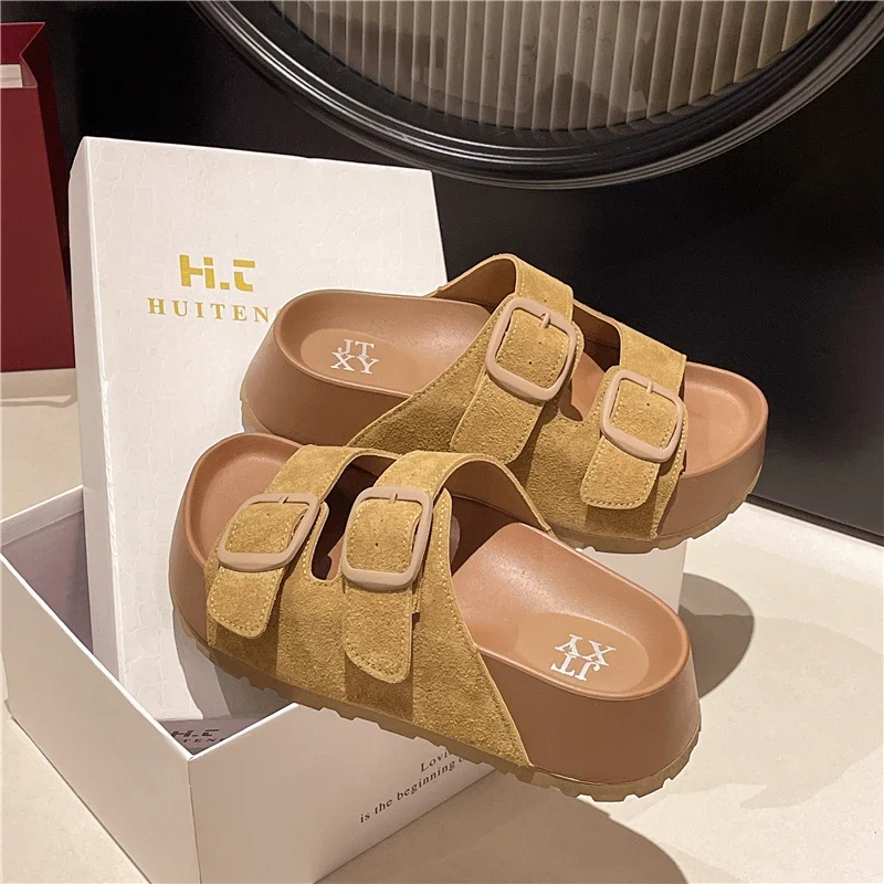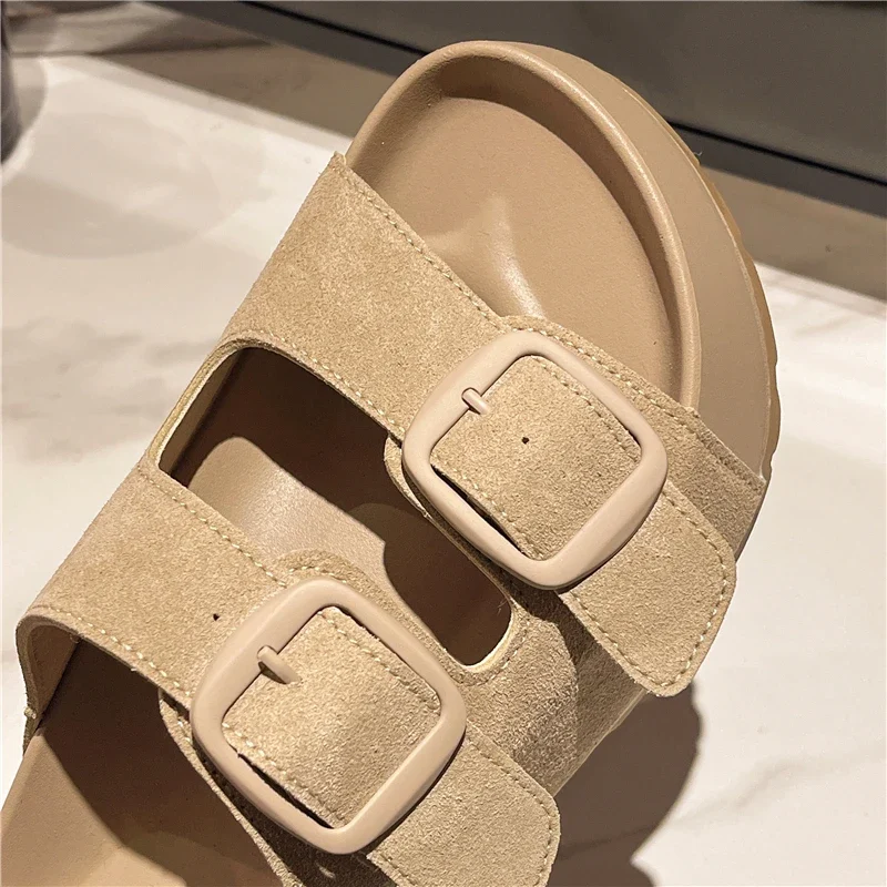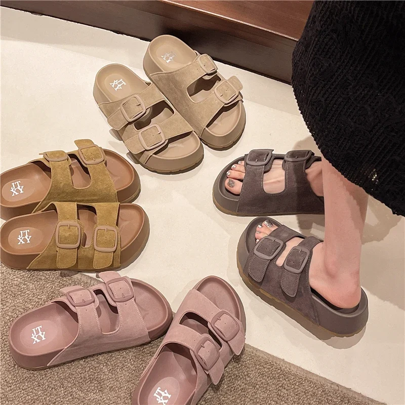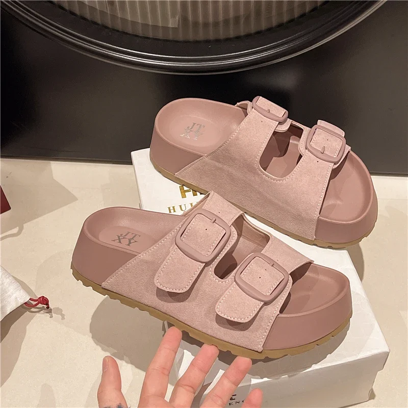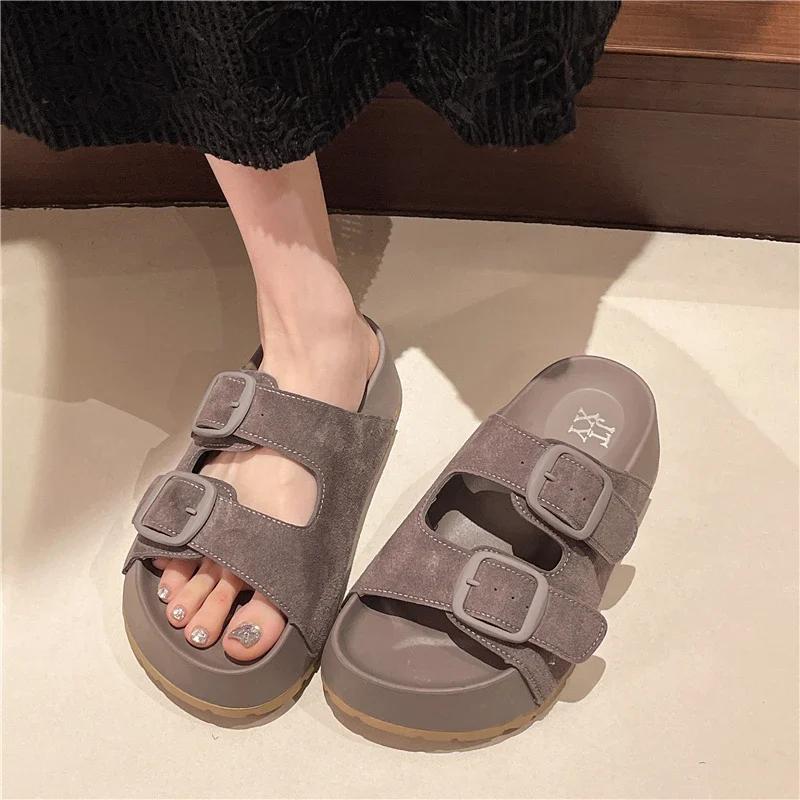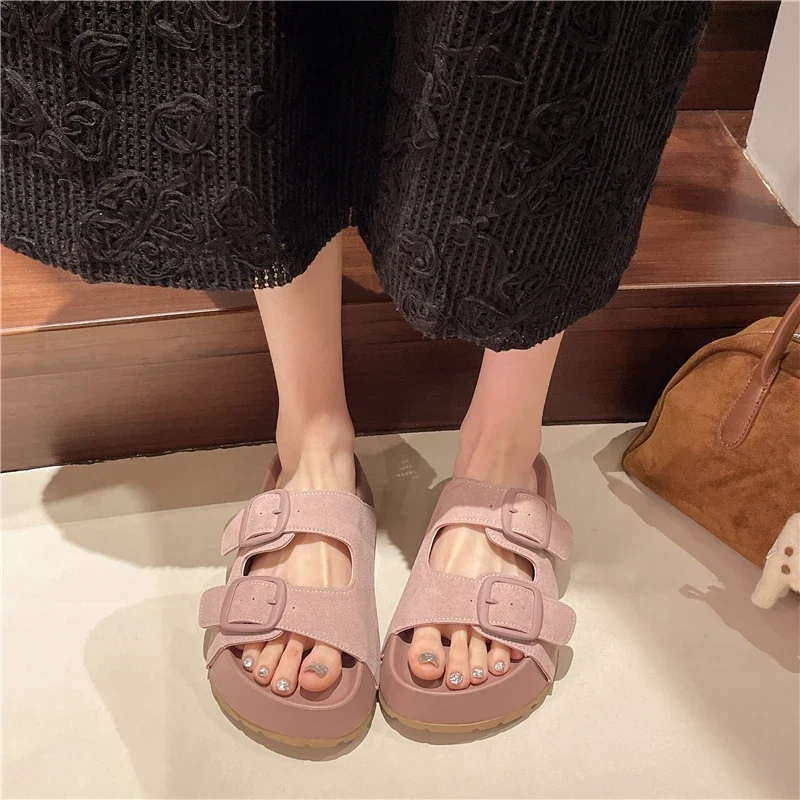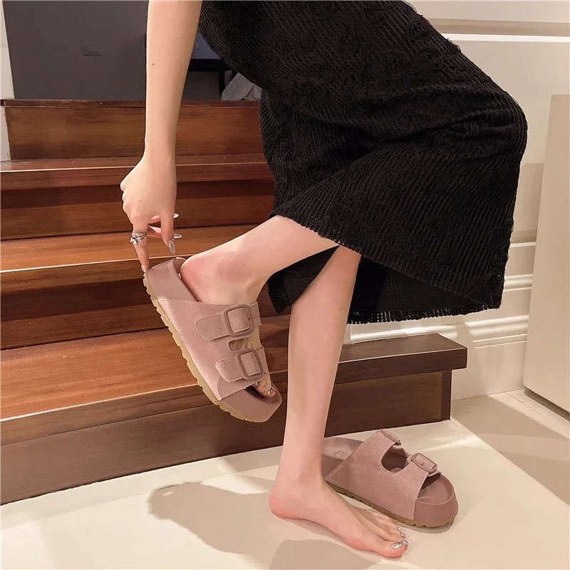 Smile Women Slippers Retro Trend With Buckle Slippers Summer Casual Women Shoes Comfortable Beach Slippers Round-headed Slippers