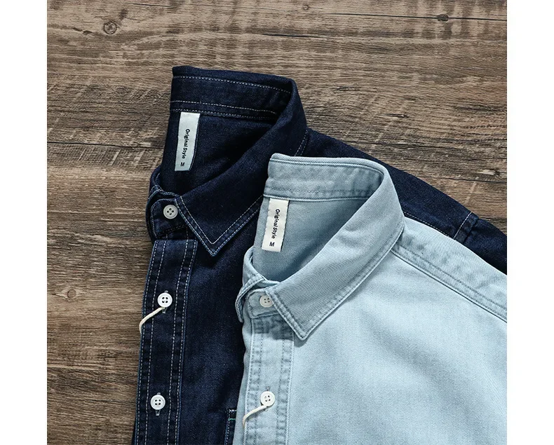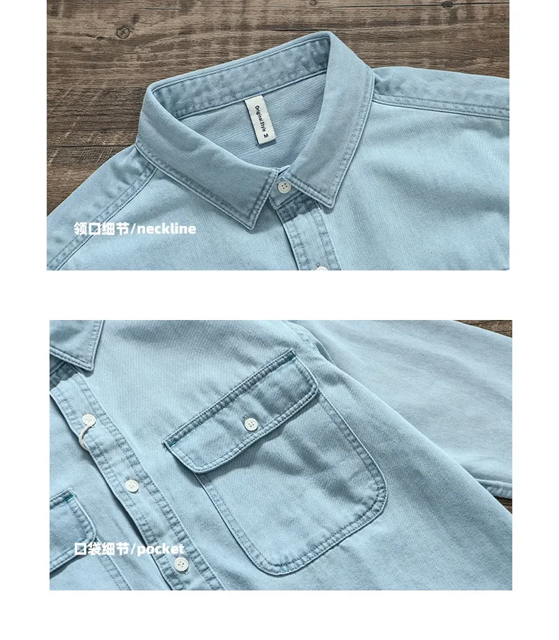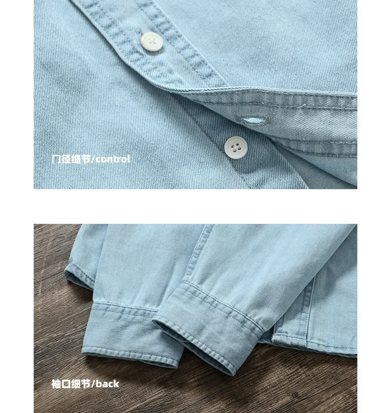 Spring And Autumn Men’s Denim Long Sleeved Shirt With Double Pockets American Work Style Loose Fitting Washed Denim Shirt Jacket