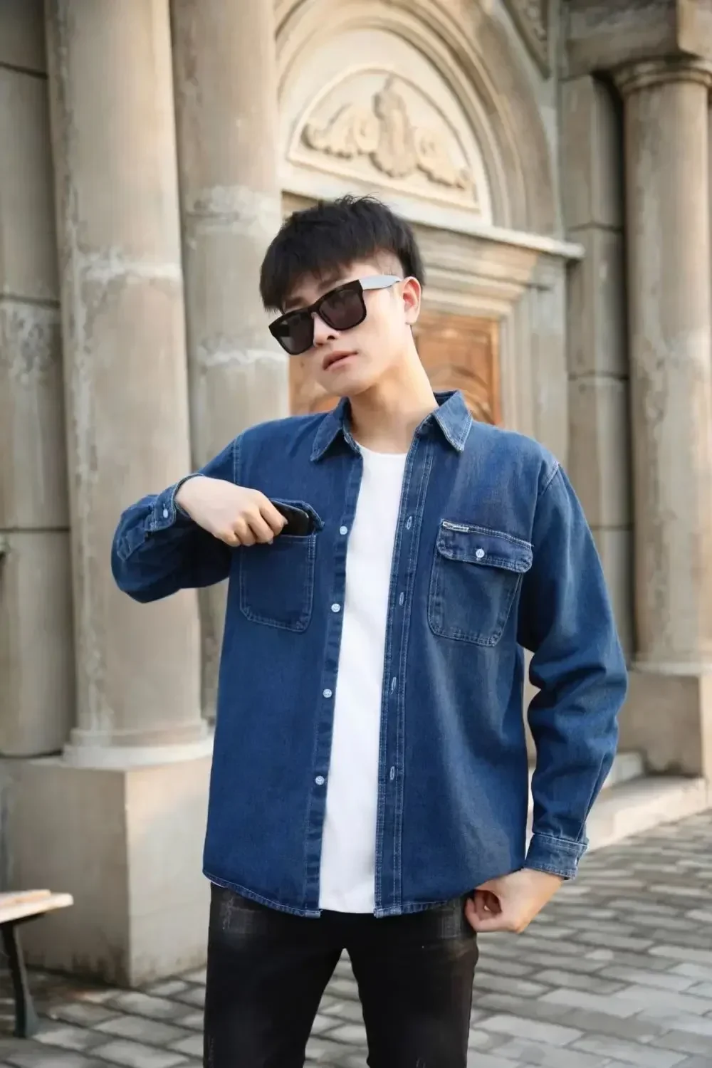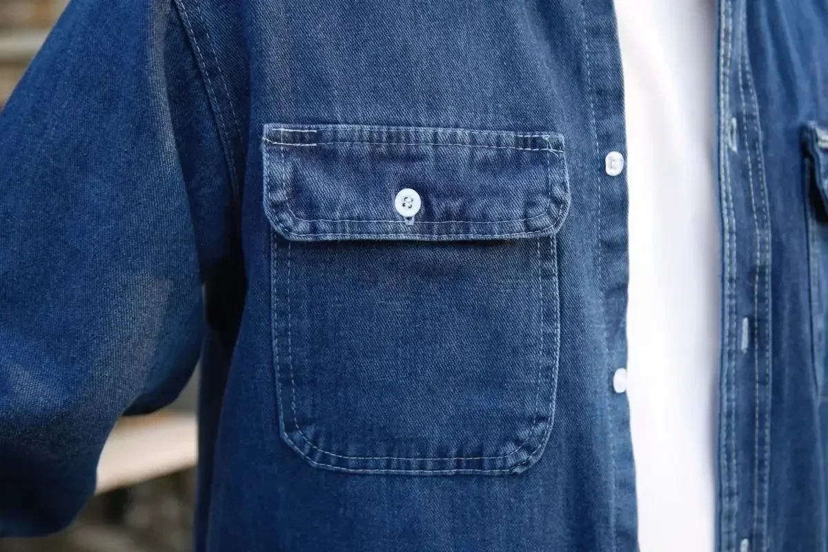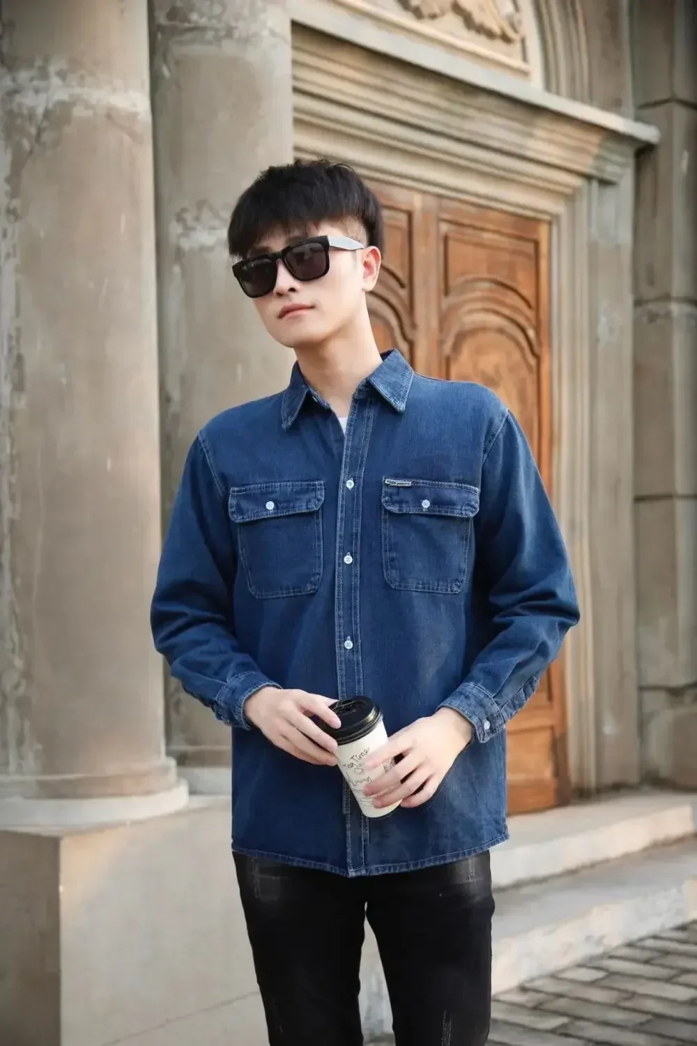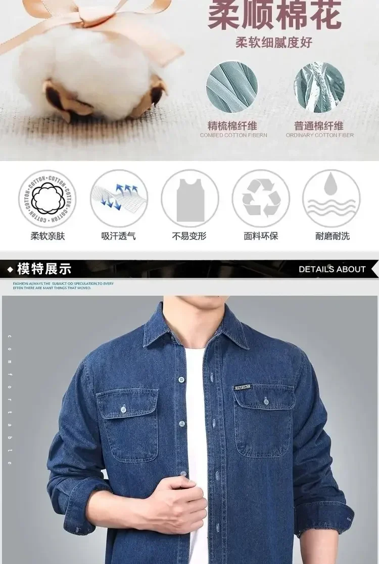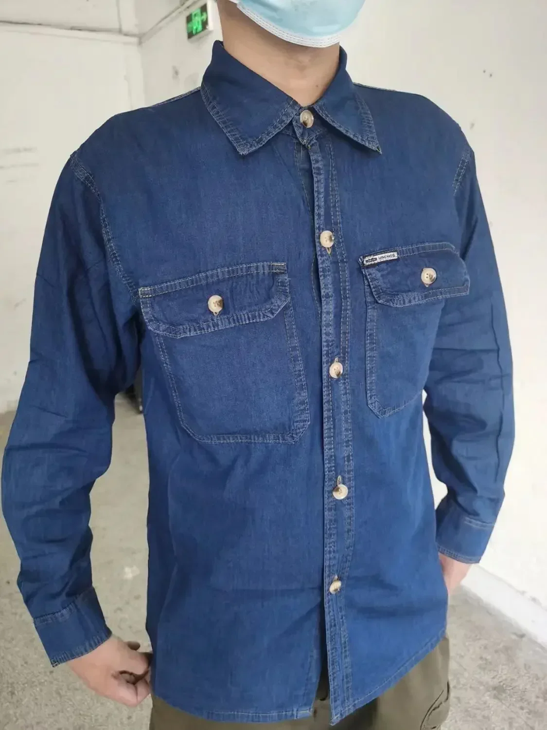 Spring and Summer Thin Medium-thick Denim Shirt Workwear Men’s Long-sleeved Construction Site Top Pure Cotton Breathable