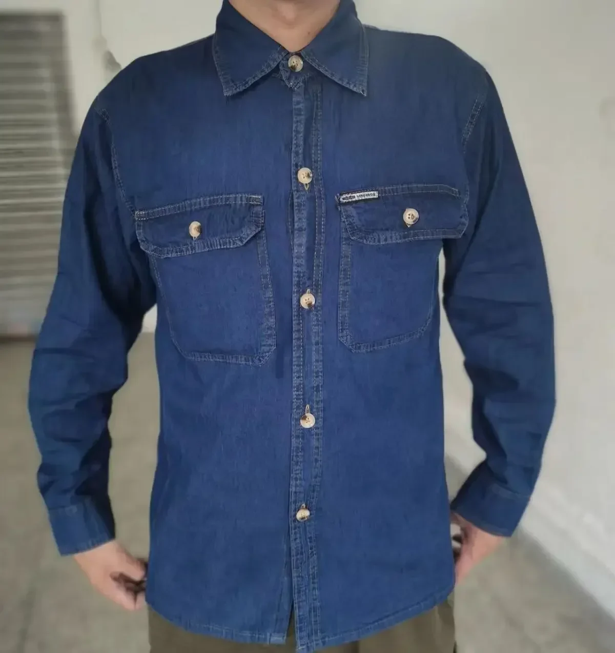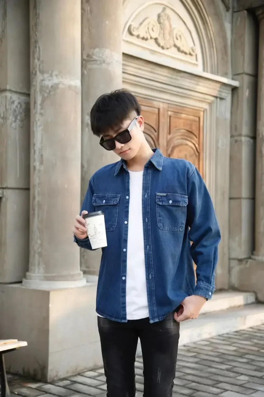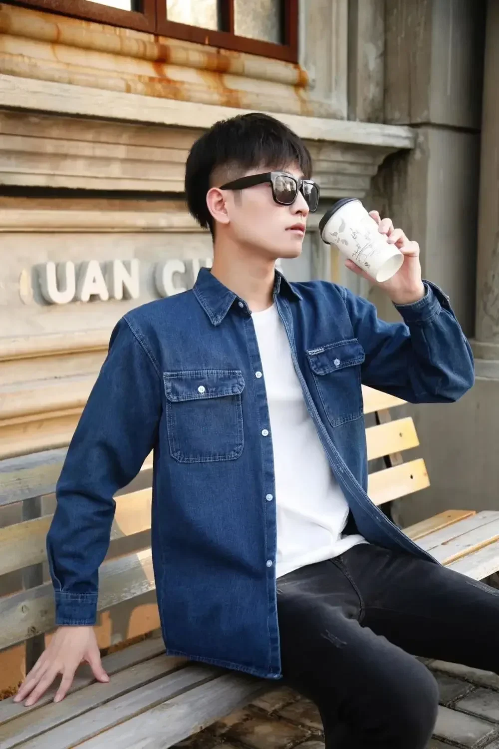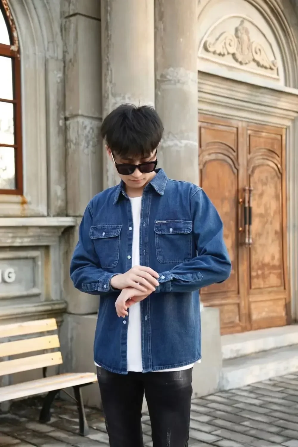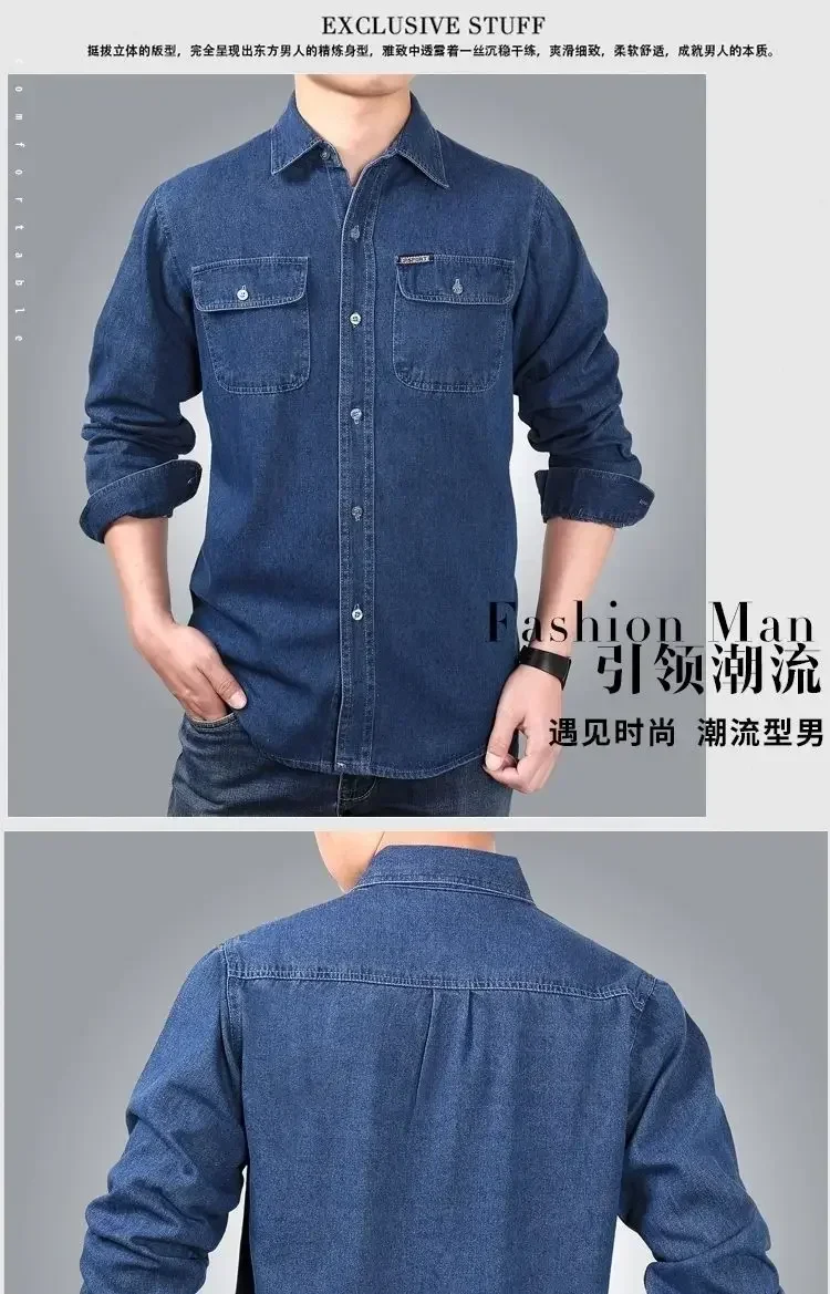 Spring and Summer Thin Medium-thick Denim Shirt Workwear Men’s Long-sleeved Construction Site Top Pure Cotton Breathable