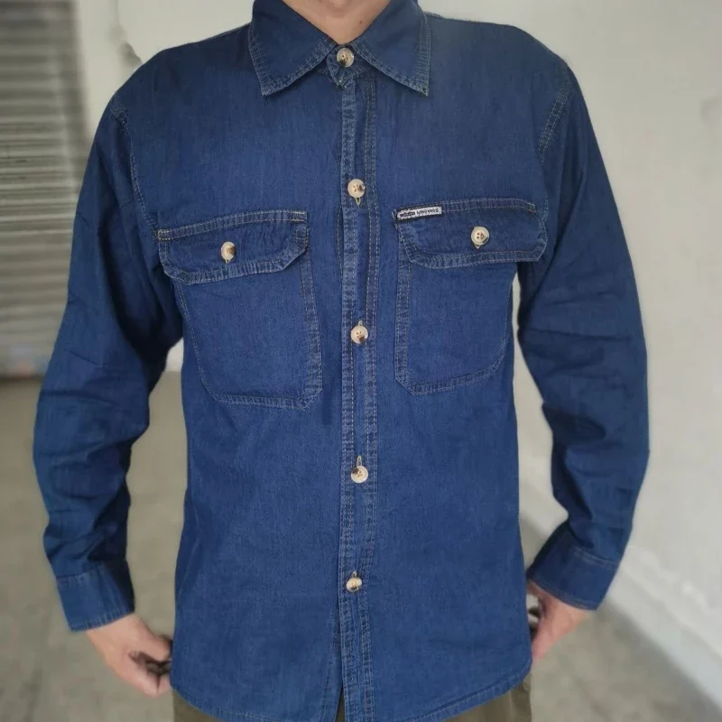 Spring and Summer Thin Medium-thick Denim Shirt Workwear Men’s Long-sleeved Construction Site Top Pure Cotton Breathable
