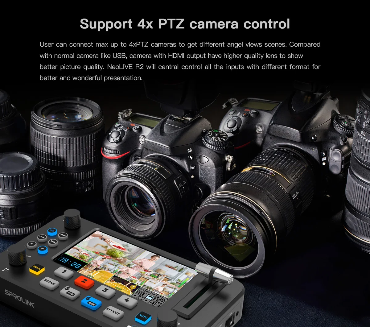 SPROLINK NEOLIVE R2 Video Mixer Switcher Multi-Cameras HDMI-compatible Video Capture · Live Streaming