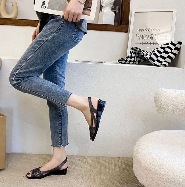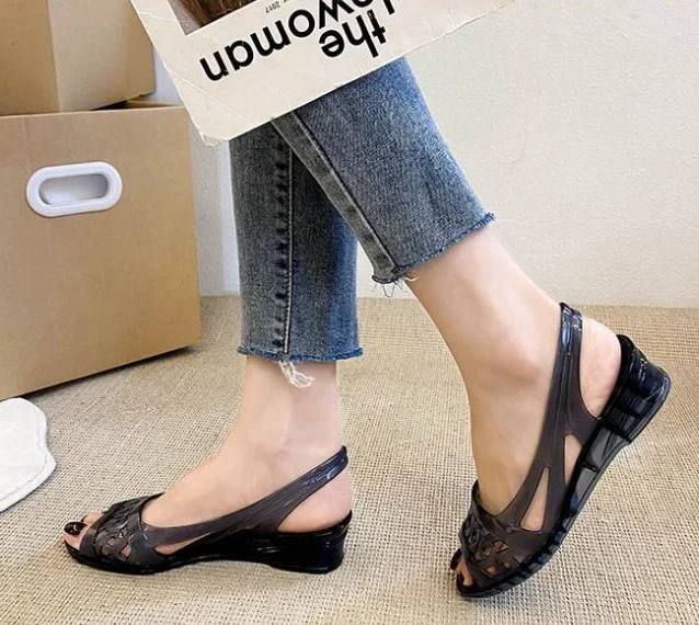 Summer 2024 Pvc Plastic Sandals for Women Purple Footwear Open Toe Ladies Shoes with Medium Heels Jelly Asian Size Vip Sale F H