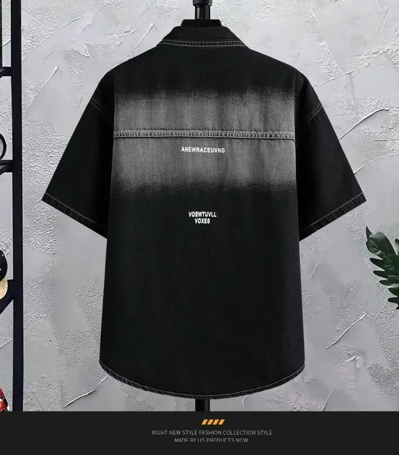 أنت تشاهد الآن:Summer 2025 Men Clothing Denim Short Sleeve Shirt Men's Retro Thin Light Blue Casual Top Student Half Sleeve Shirt with Pocket