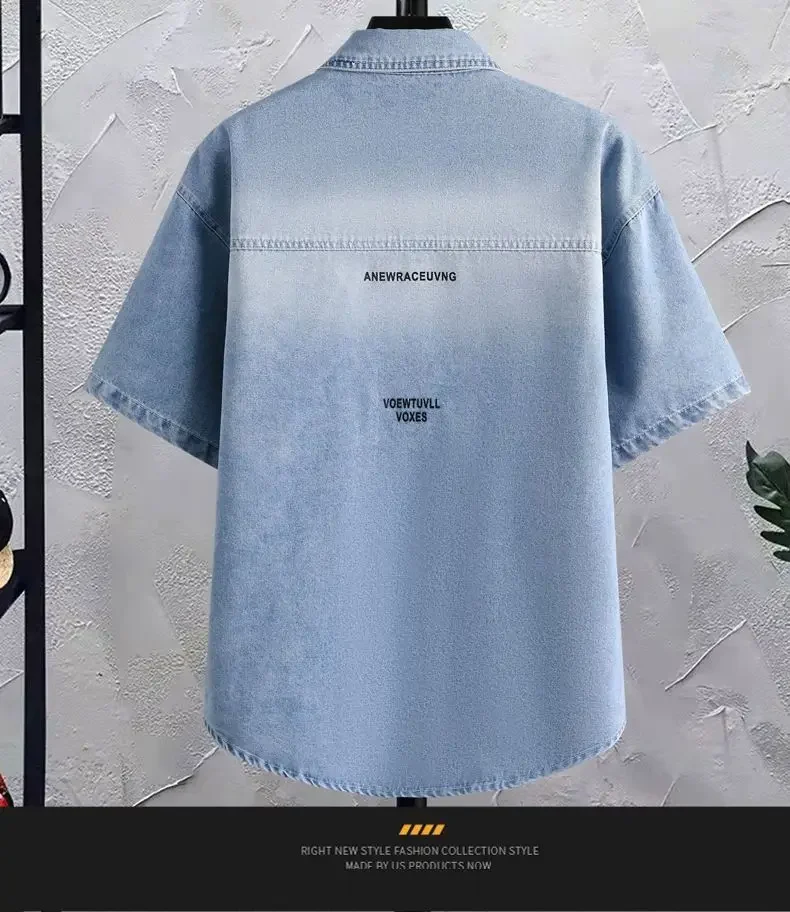 Summer 2025 Men Clothing Denim Short Sleeve Shirt Men's Retro Thin Light Blue Casual Top Student Half Sleeve Shirt with Pocket<span> - </span>S3191 blue, XL weight60-70 kg