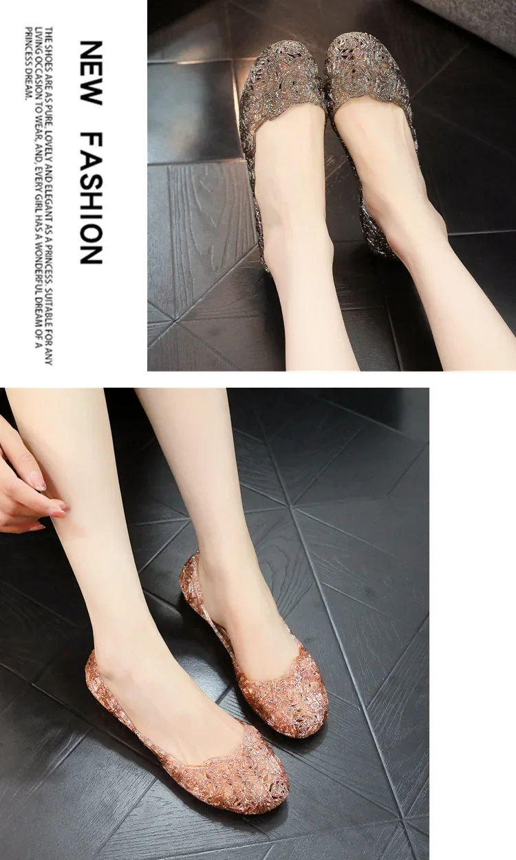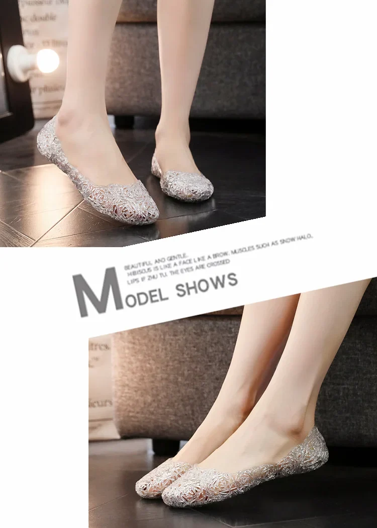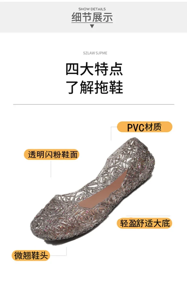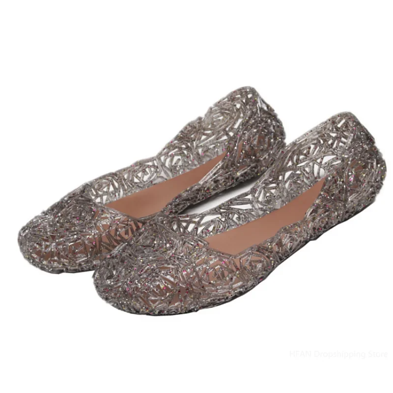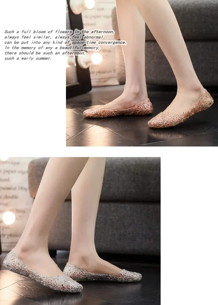 Summer Flat Sandals Women Hollow Out Crystal Plastic Jelly Shoes Mesh Outdoor Sandals
