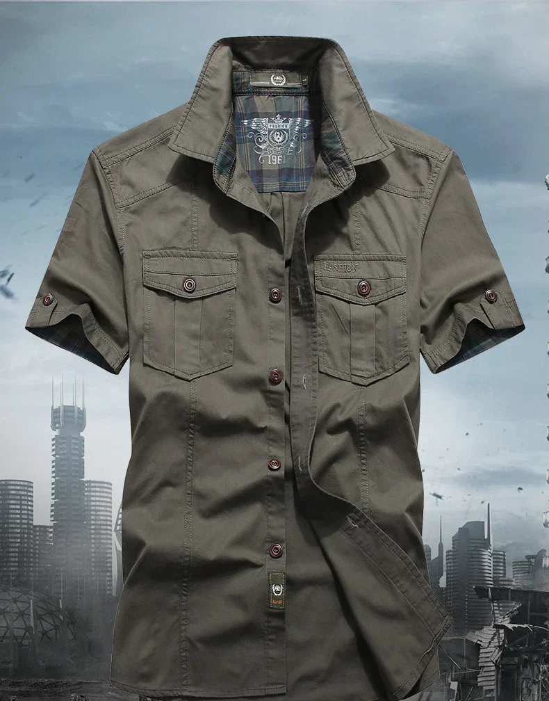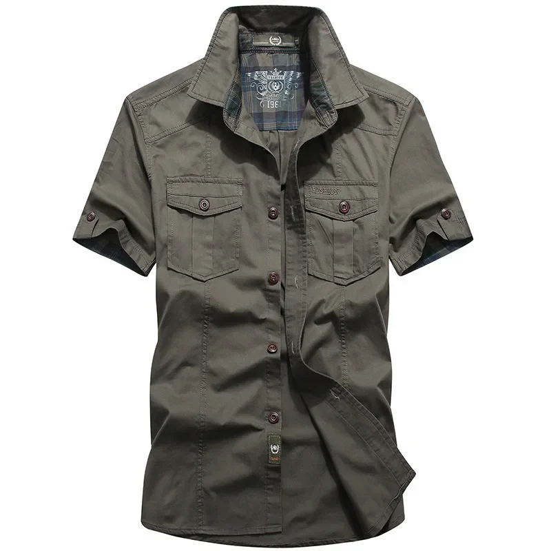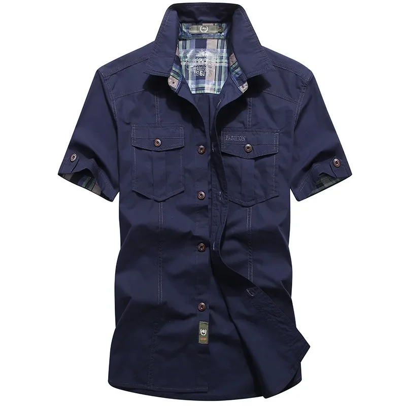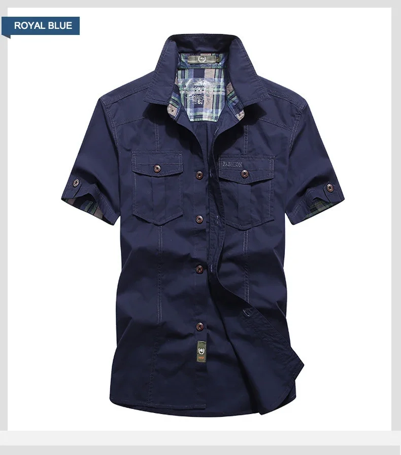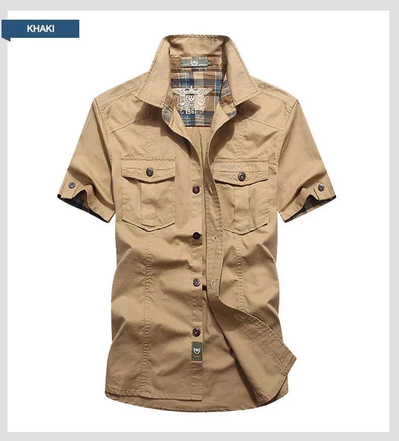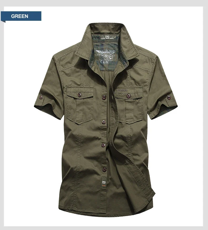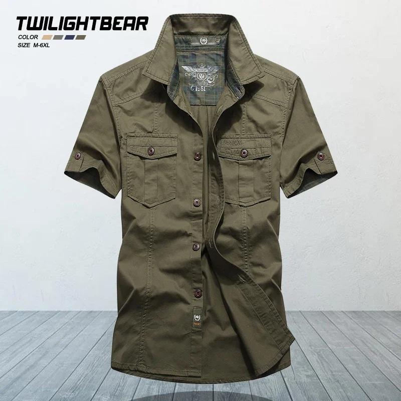 Summer Men’s Shirts 6XL Short Sleeve Tooling Shirt Multi Pockets Men Working Clothe High Quality Cotton Casual Shirt A2F1391