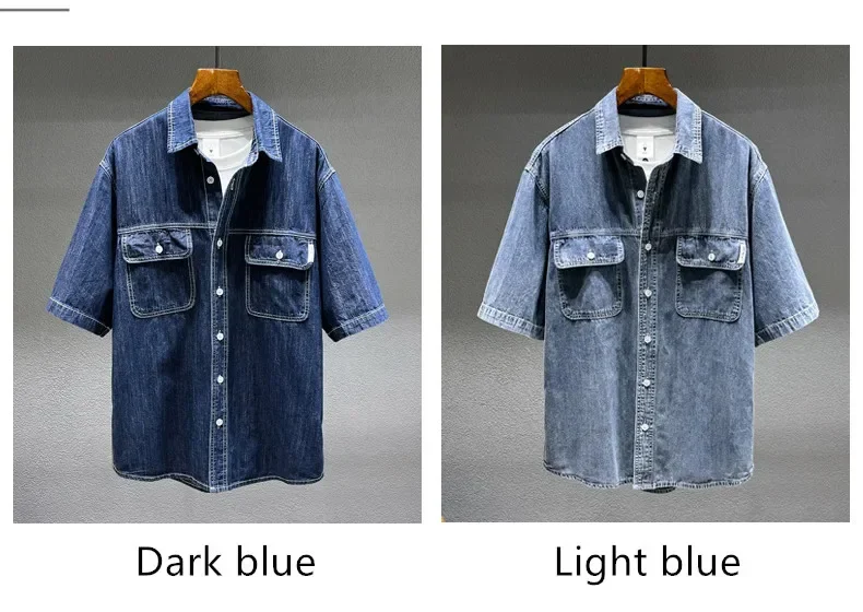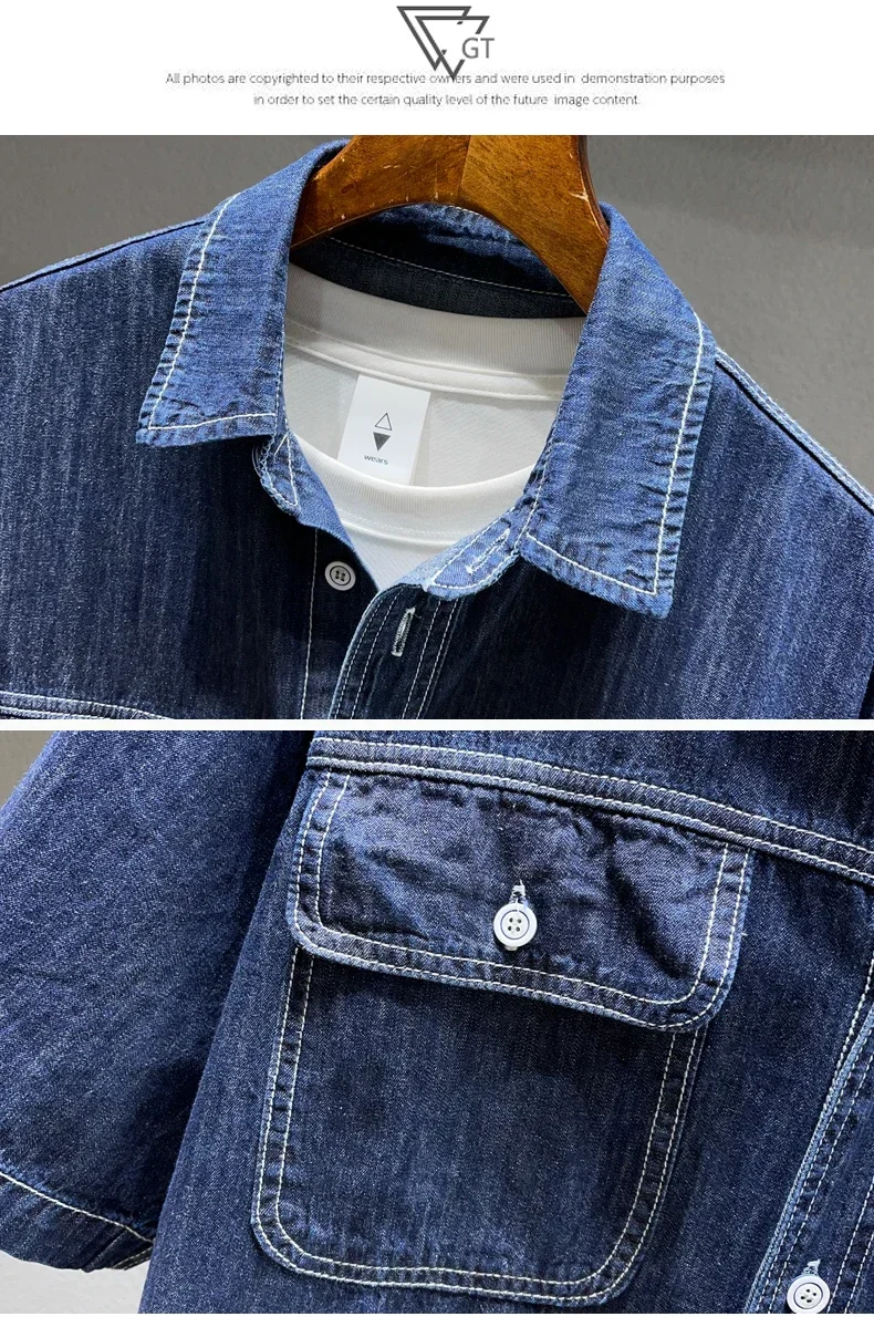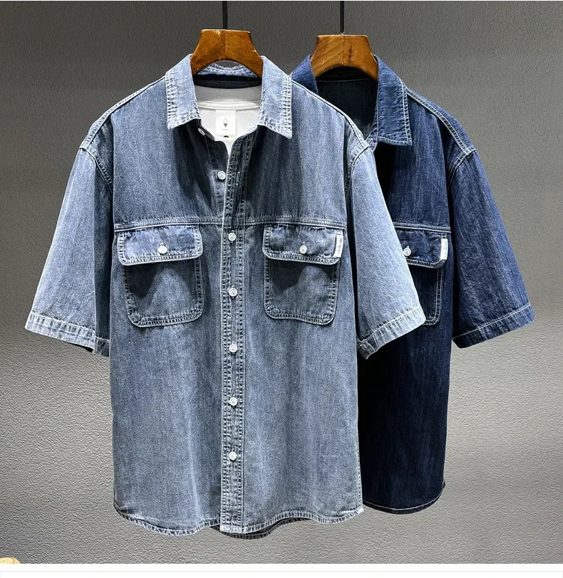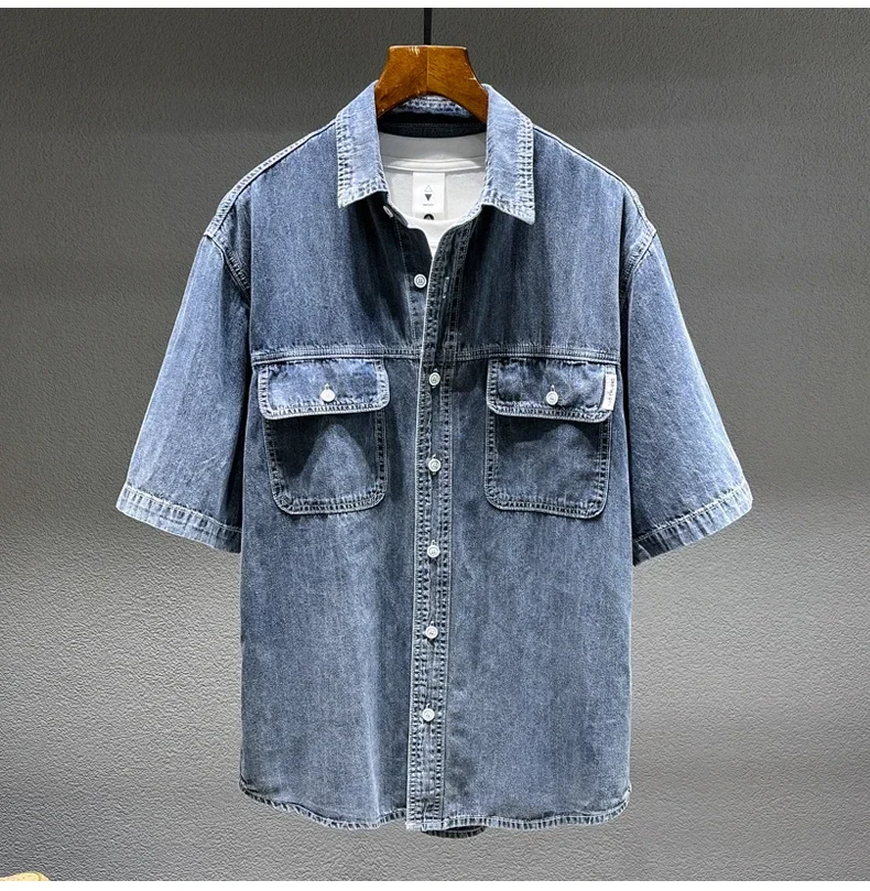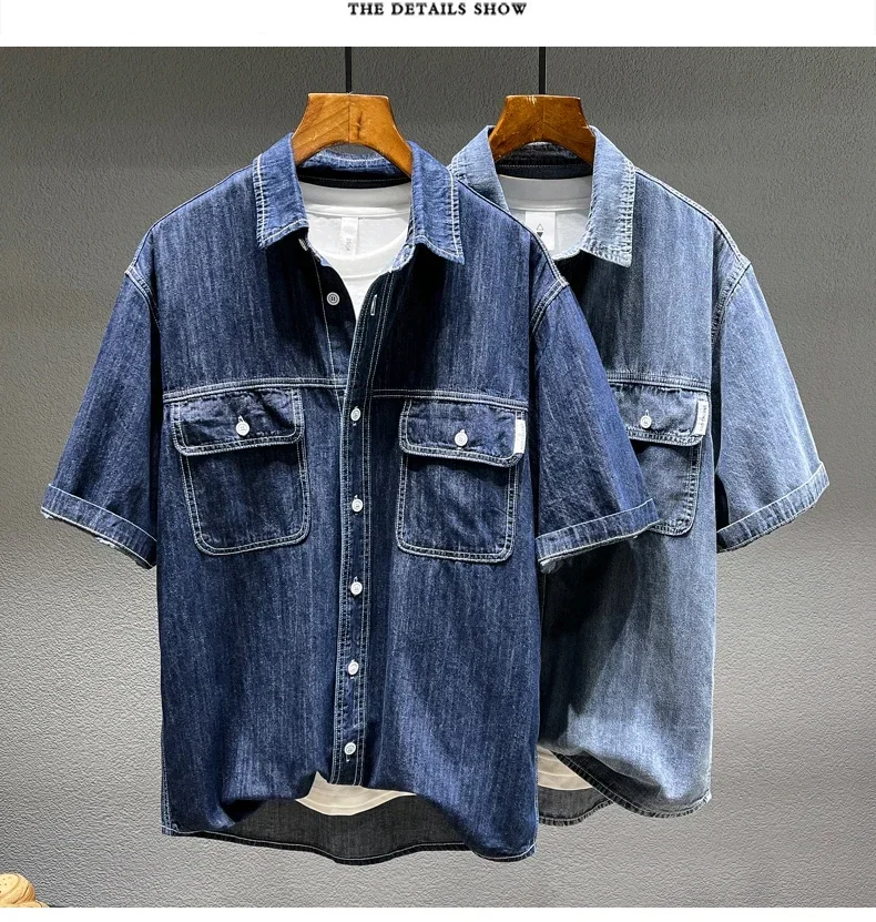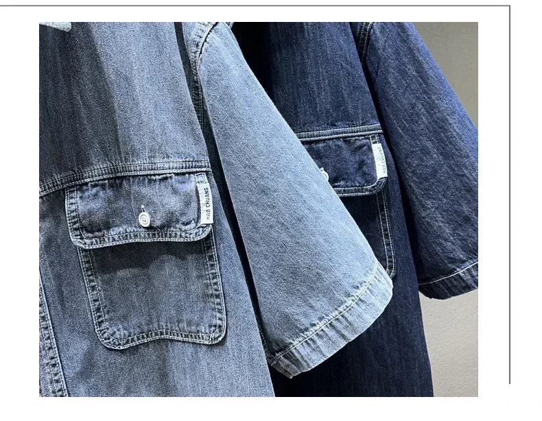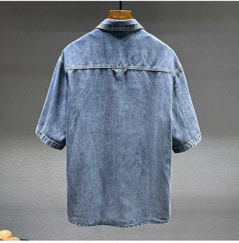 Summer New Men’s Denim Short-sleeved Shirt Retro Large Size Tooling Loose Casual Denim Tops All-match 7XL 8XL
