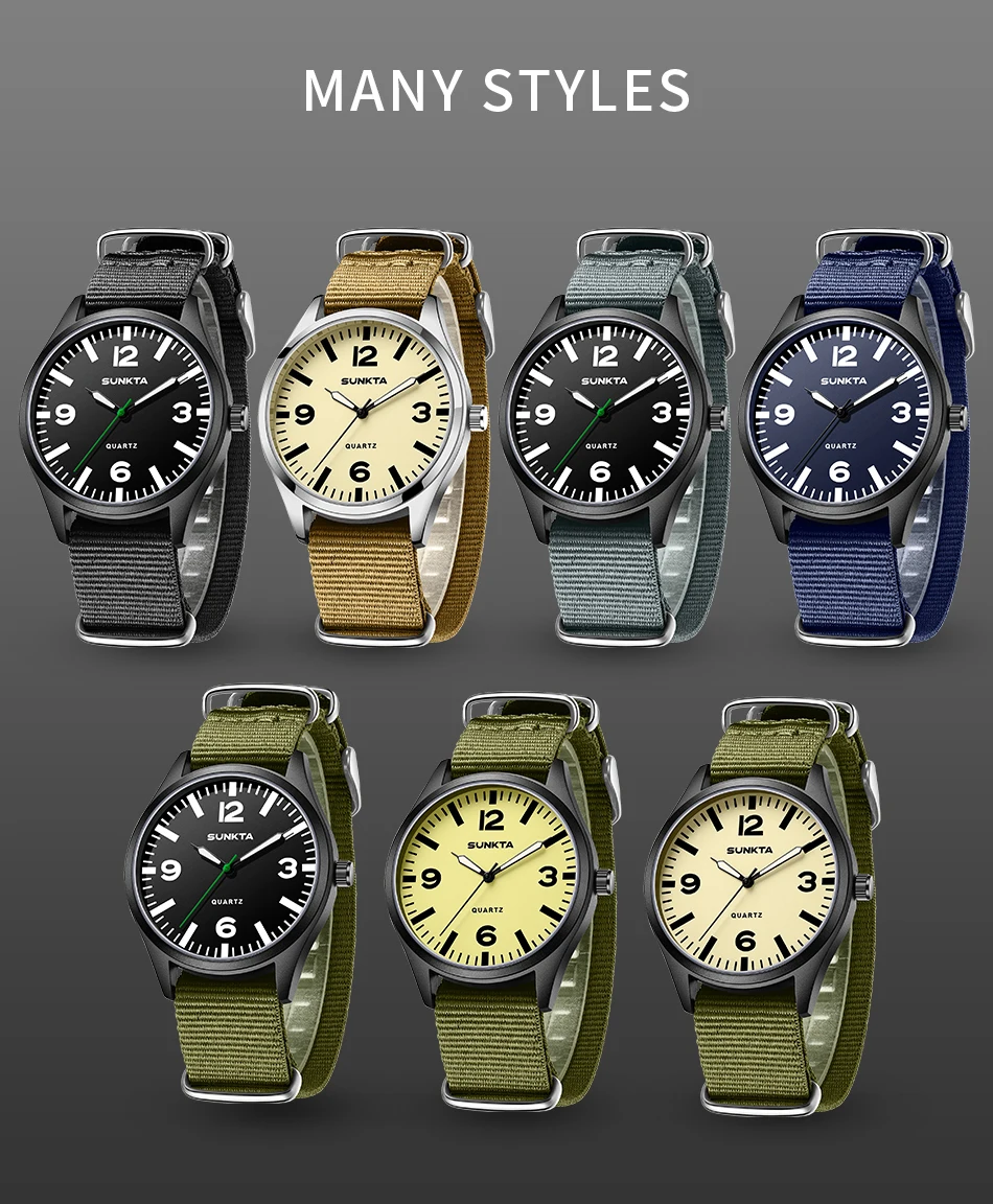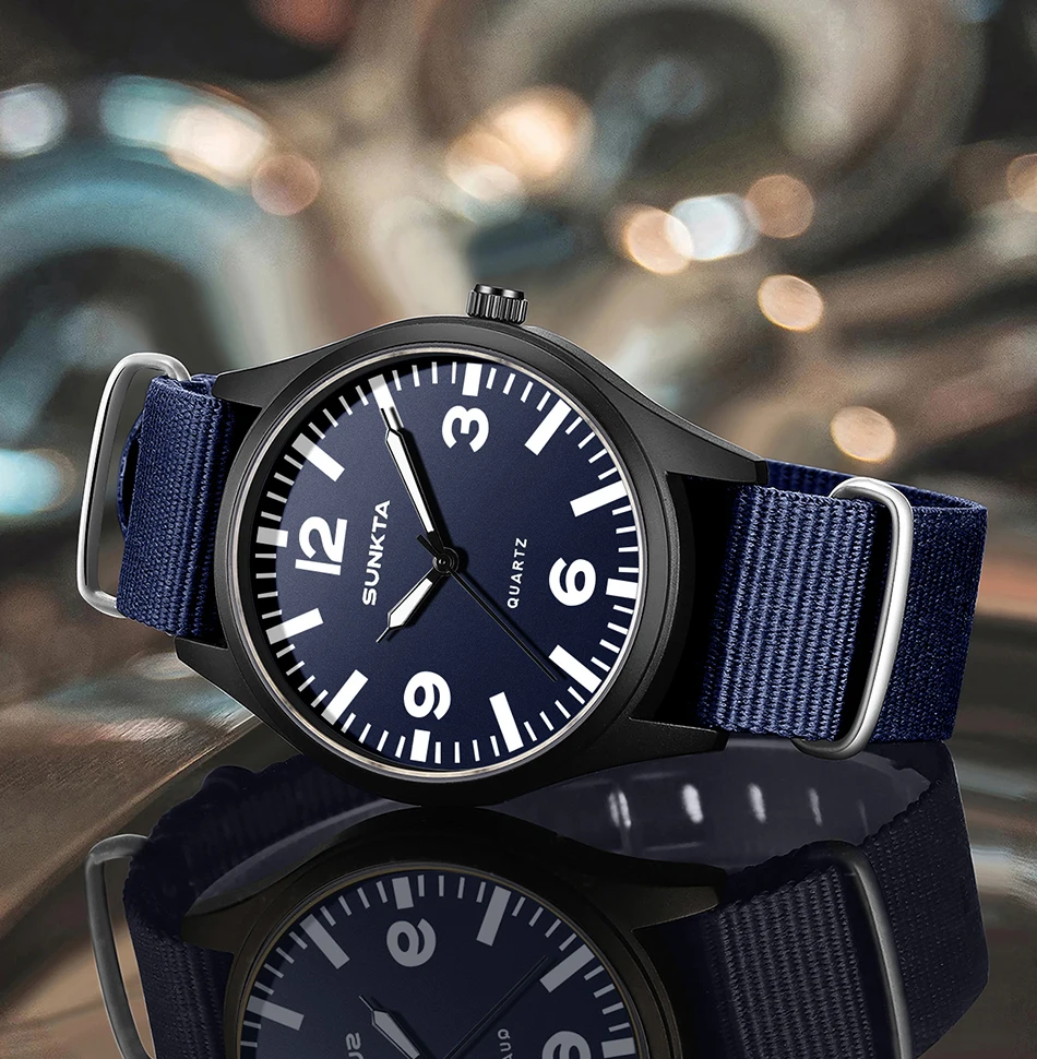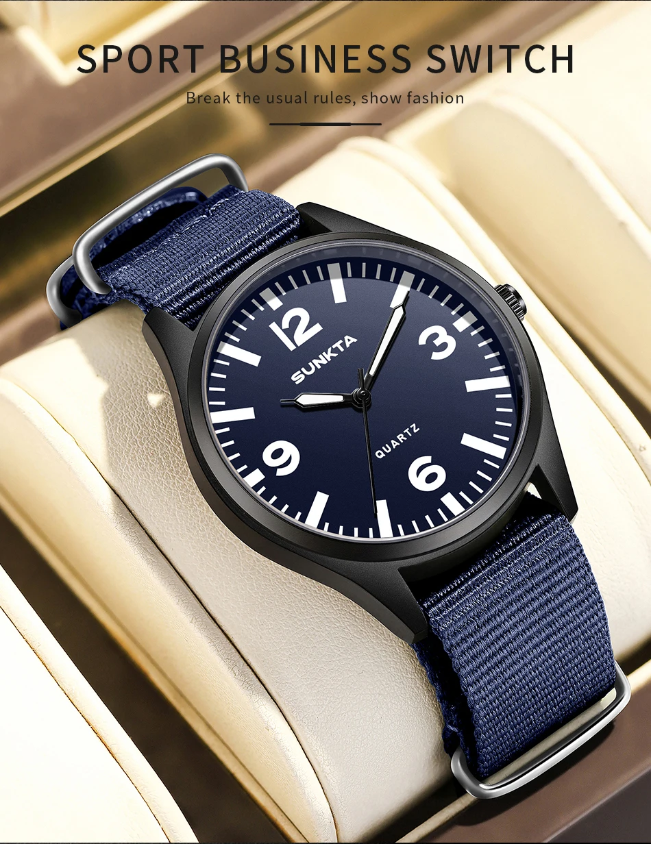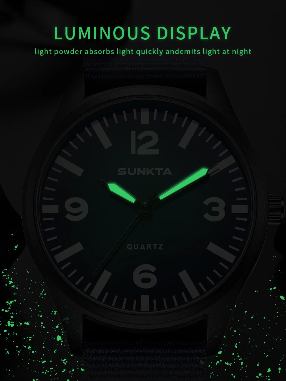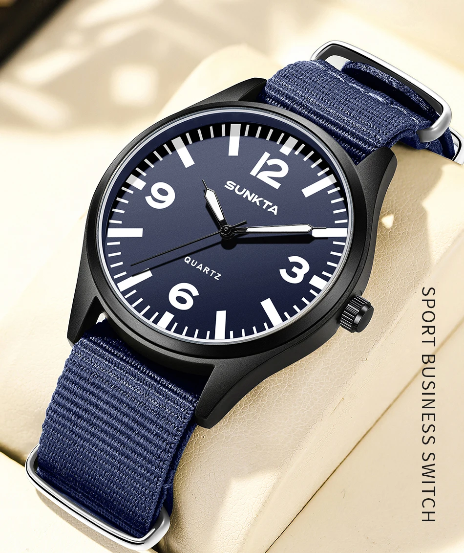 SUNKTA Brand Luxury Men Quartz Watch Date Nylon Leather Waterproof Luminous Military Sports Watches For Men relogios masculino
