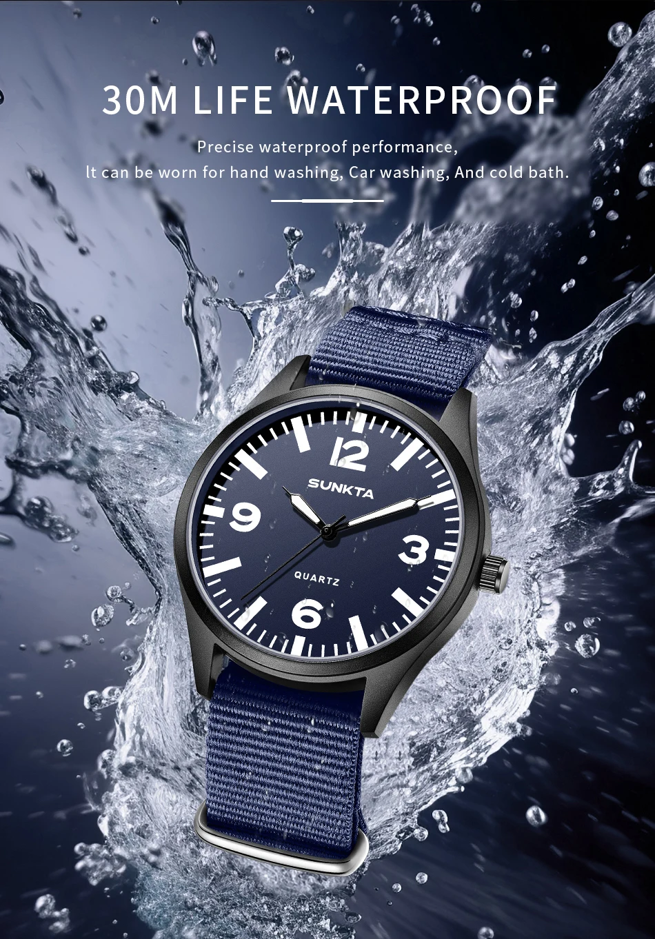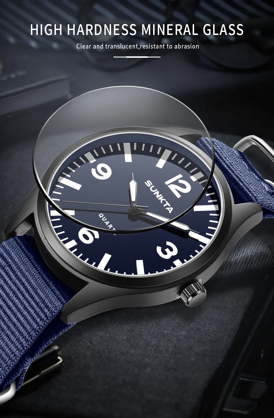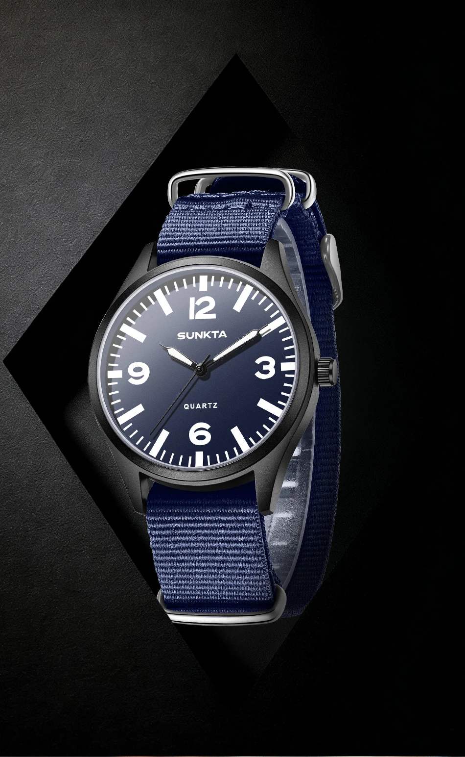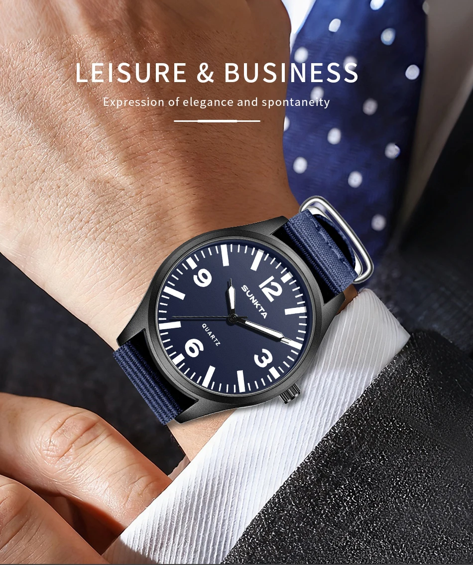 SUNKTA Brand Luxury Men Quartz Watch Date Nylon Leather Waterproof Luminous Military Sports Watches For Men relogios masculino
