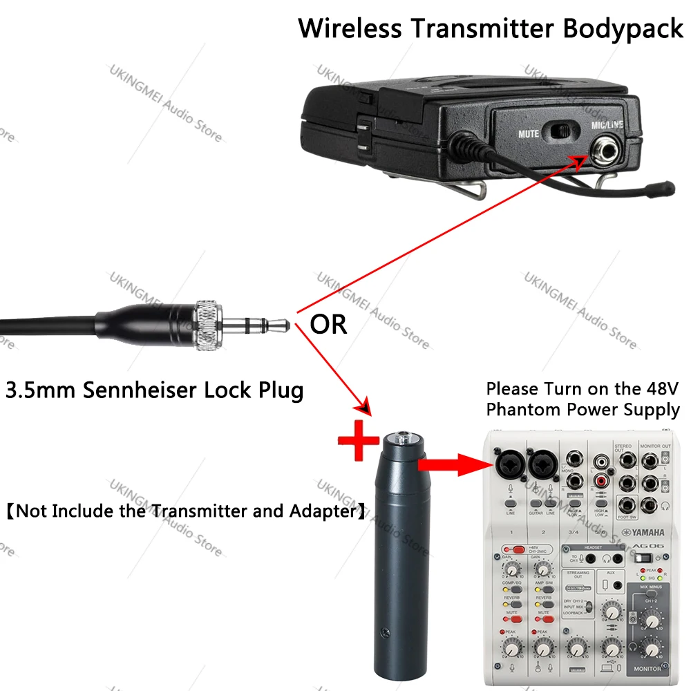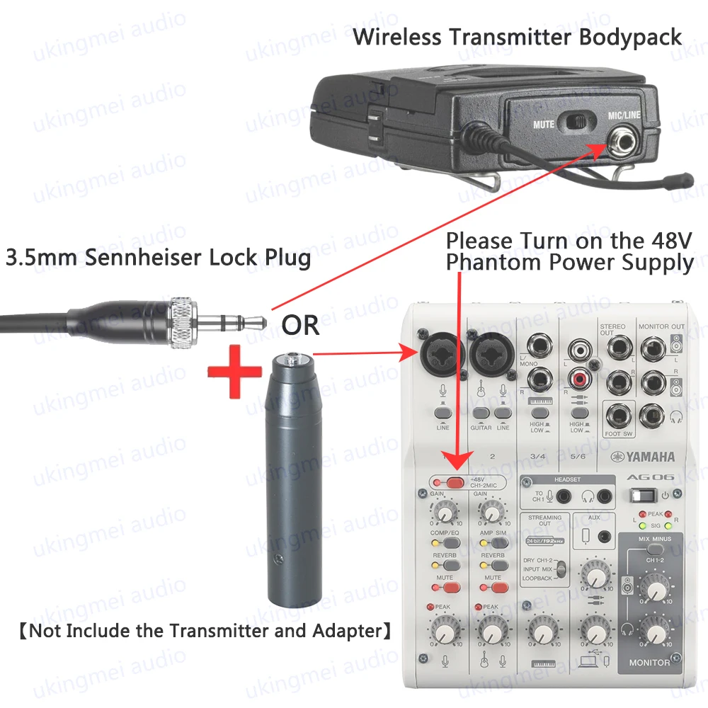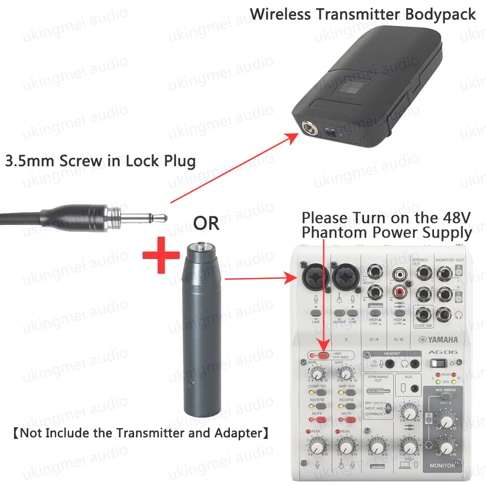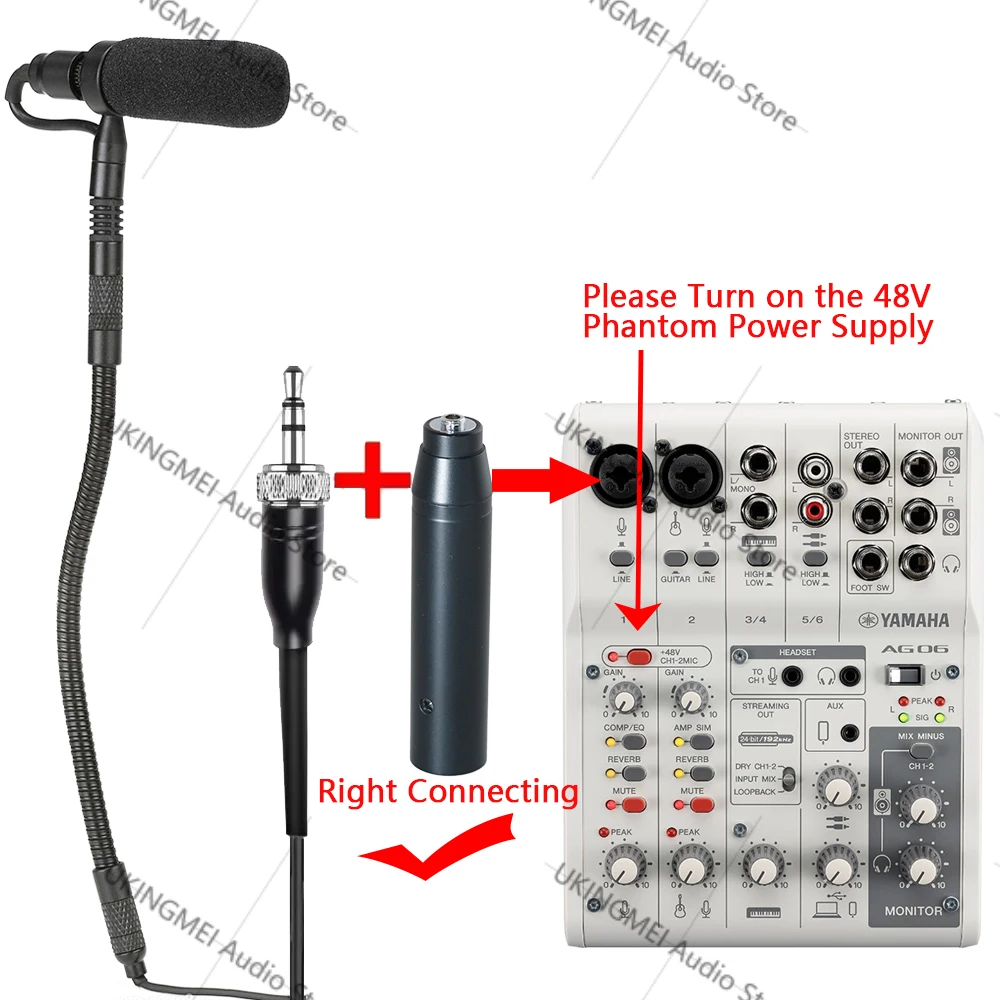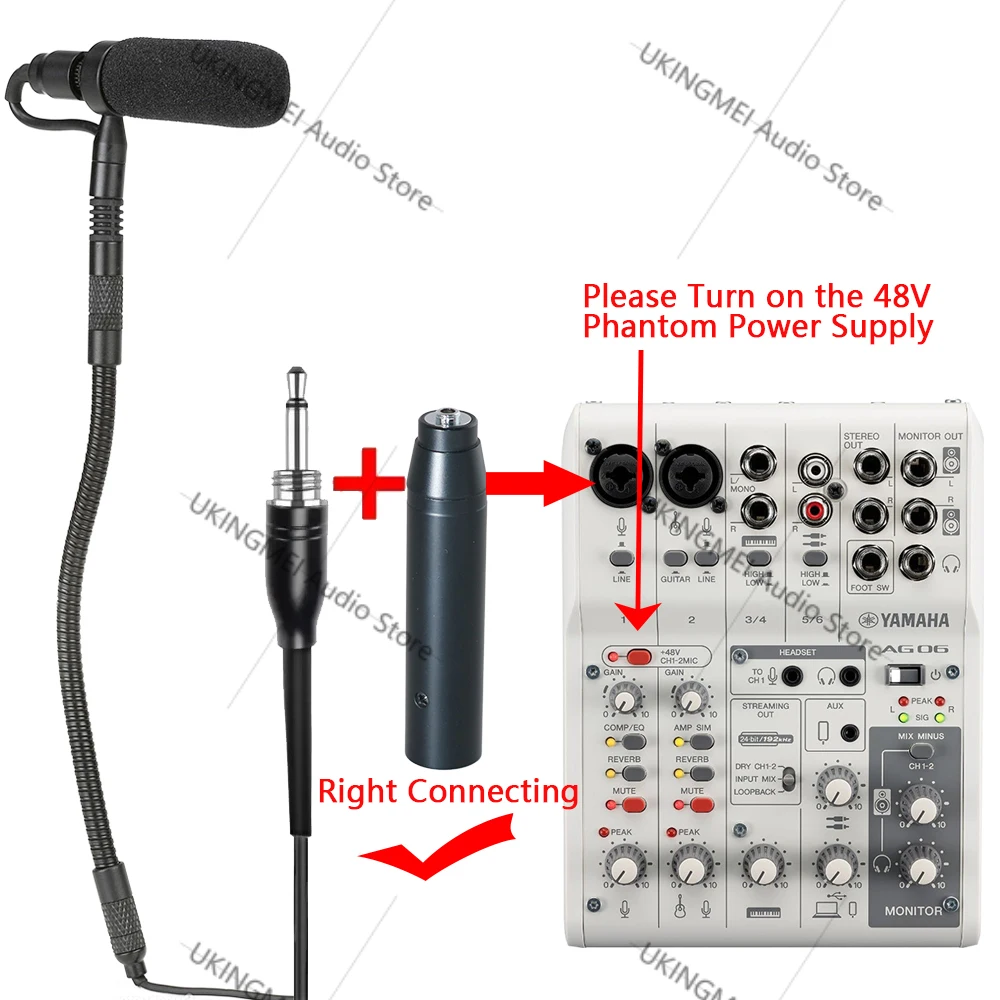 Can not be directly plug to Phantom Power Microphone Input (Phantom Power Adapter need to add Purchases,this link not include it!). To use