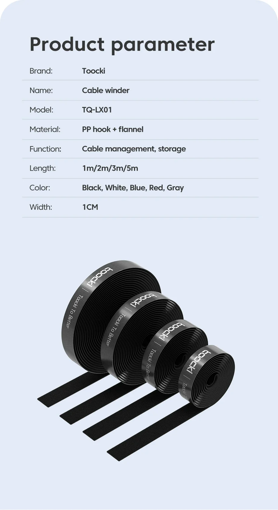 Toocki 1-5M Cable Organizer Winder Tape Free Cut Cable Management Ties Keyboard Mouse Network Wire Kabel Organizador De Cables