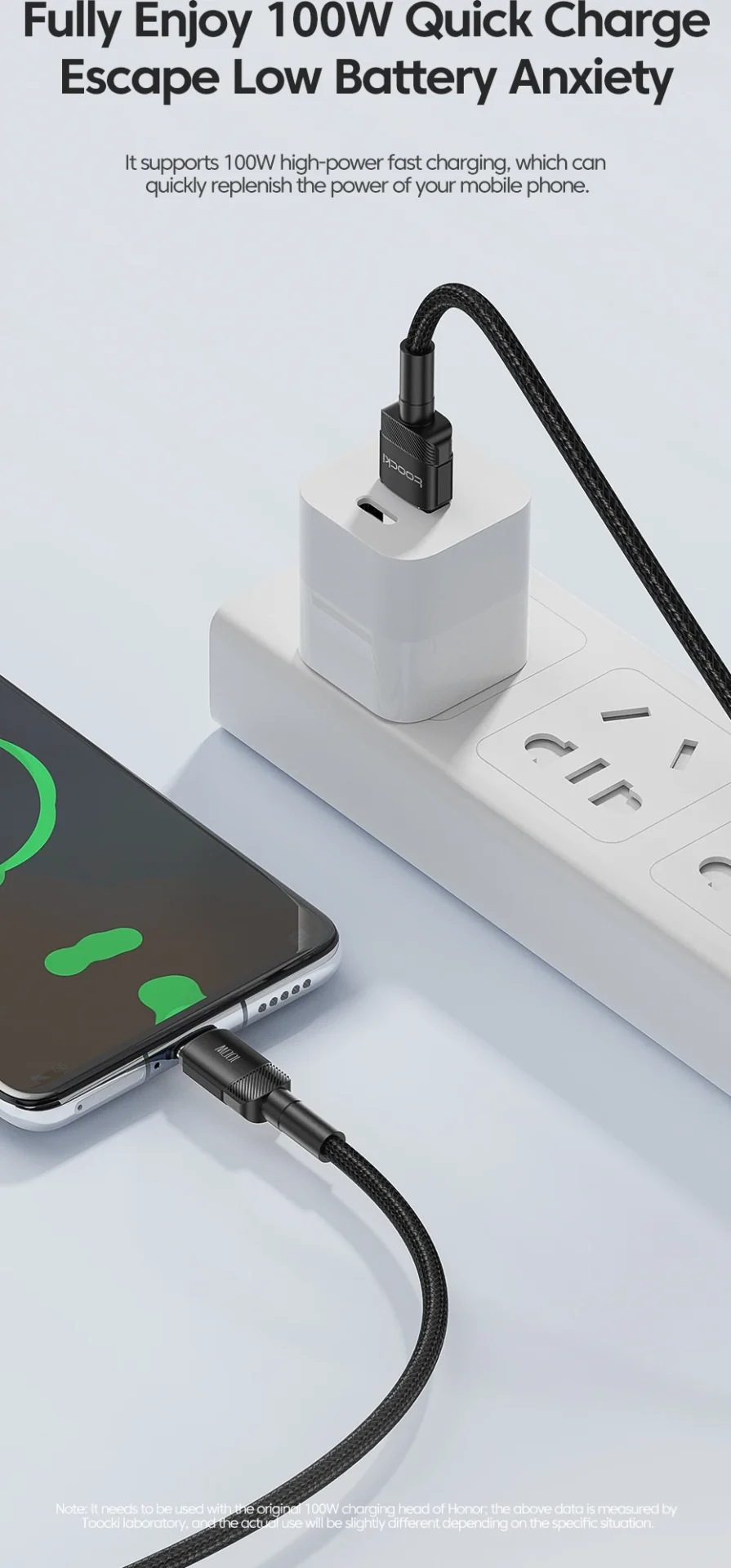 Toocki 100W 6A USB C Fast Charging Data USB Cable Type C For Huawei Honor Oneplus Realme Xiaomi Samsung USB A To C Phone Cord