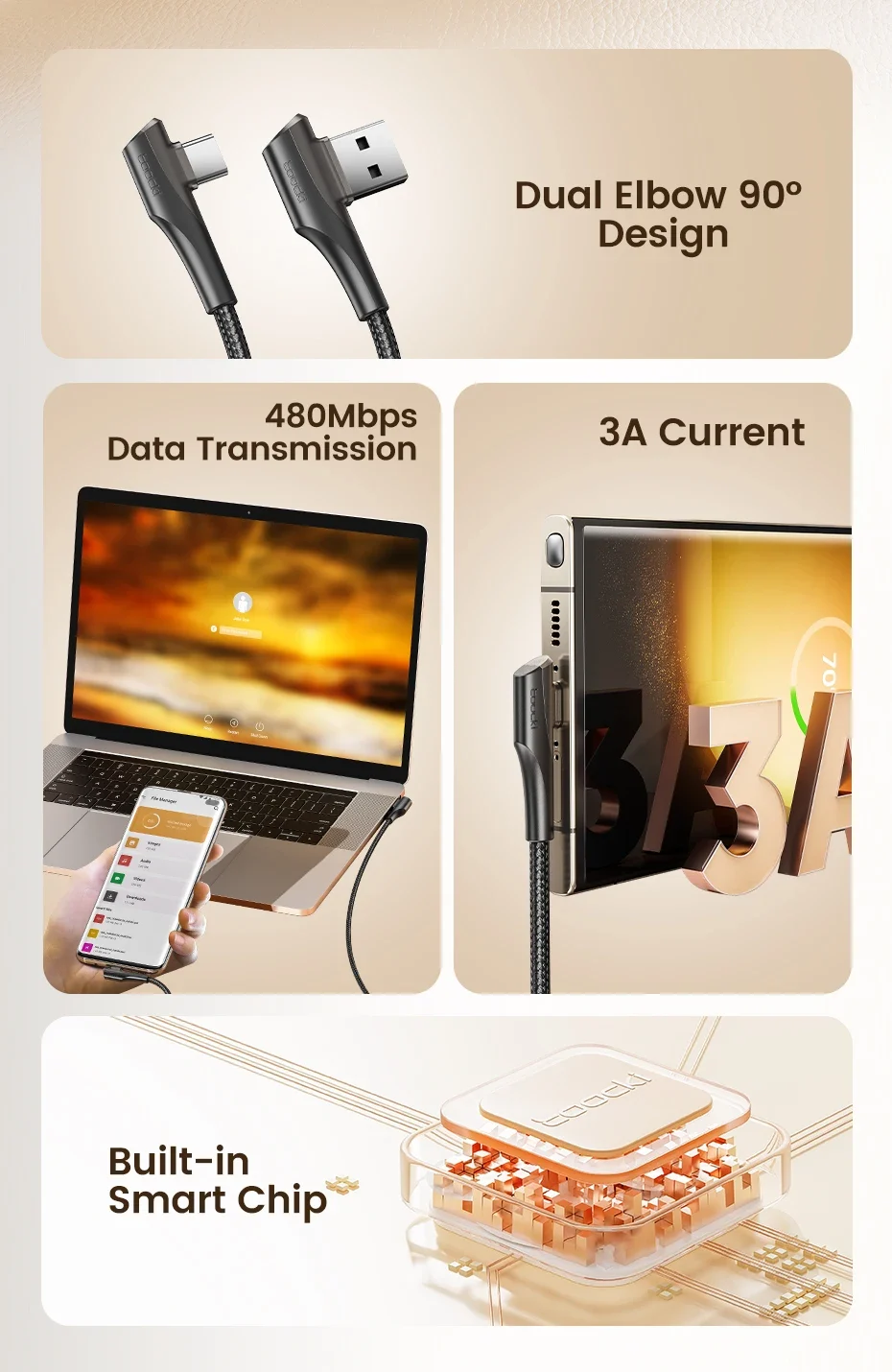 | Feature 1 | double elbow 90 degree usb type c cable |