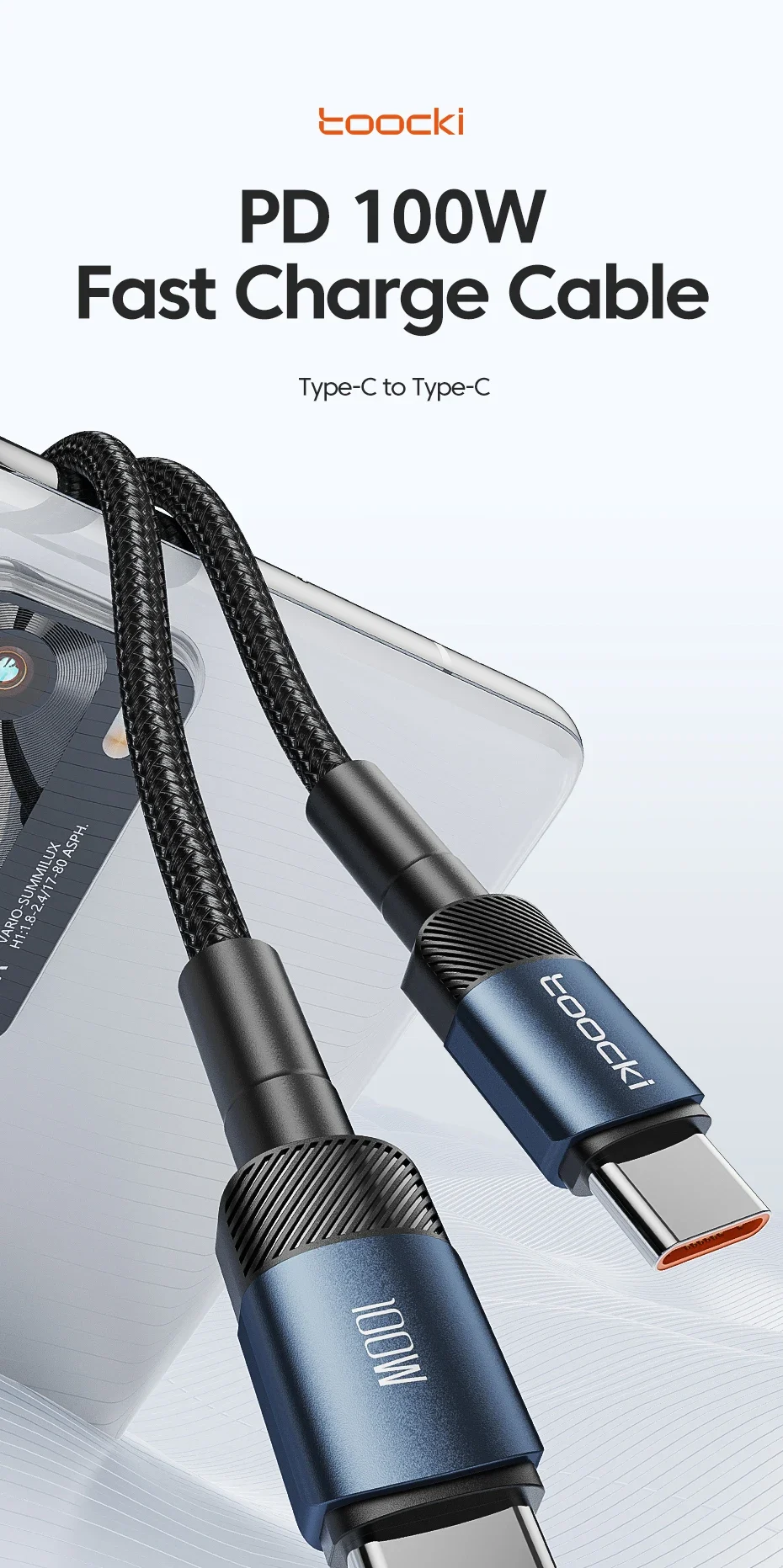 Toocki USB Type C To Type C Cable 100W/66W Fast Charging For Samsung Xiaomi Huawei Macbook Tablet Phone Data Cable USB C To C