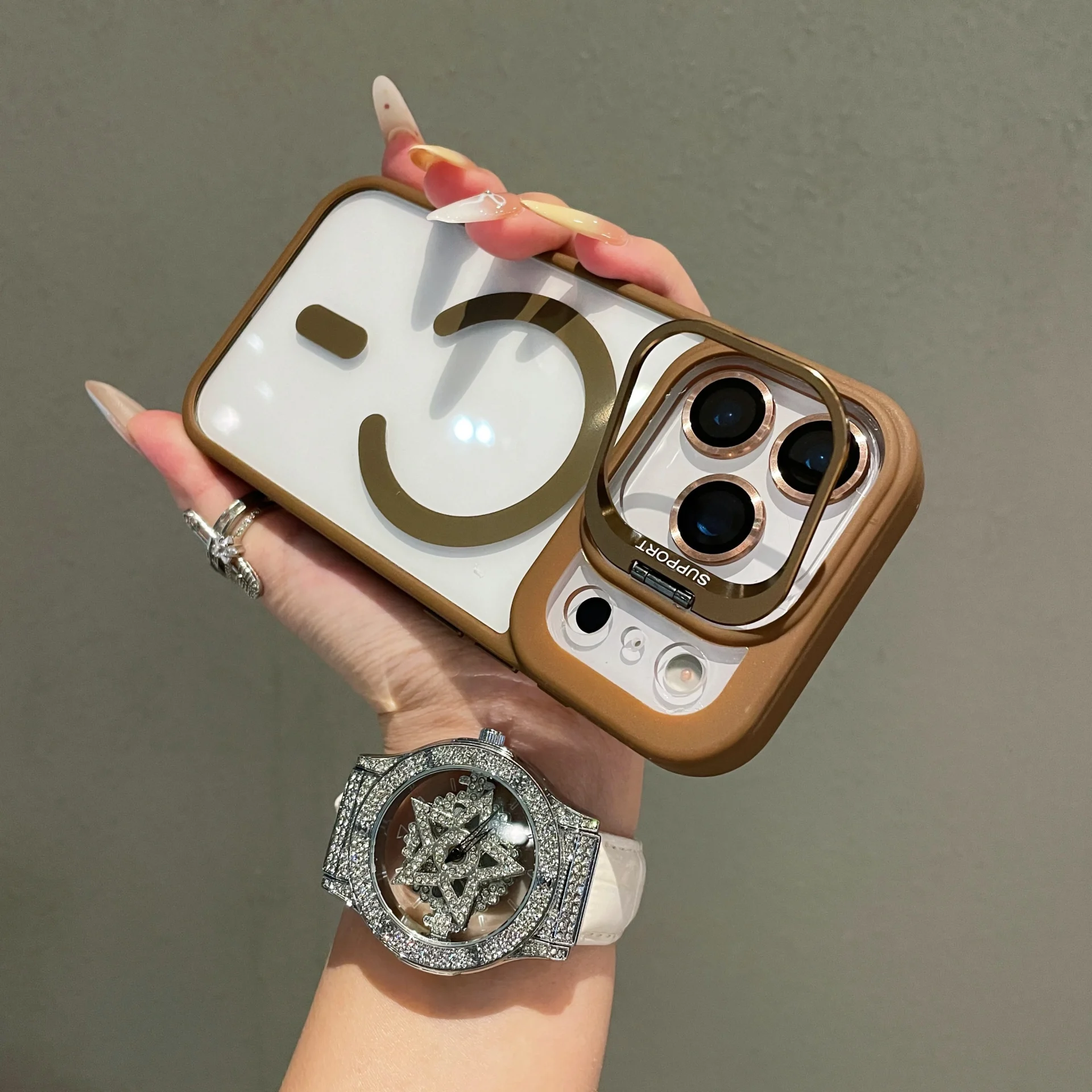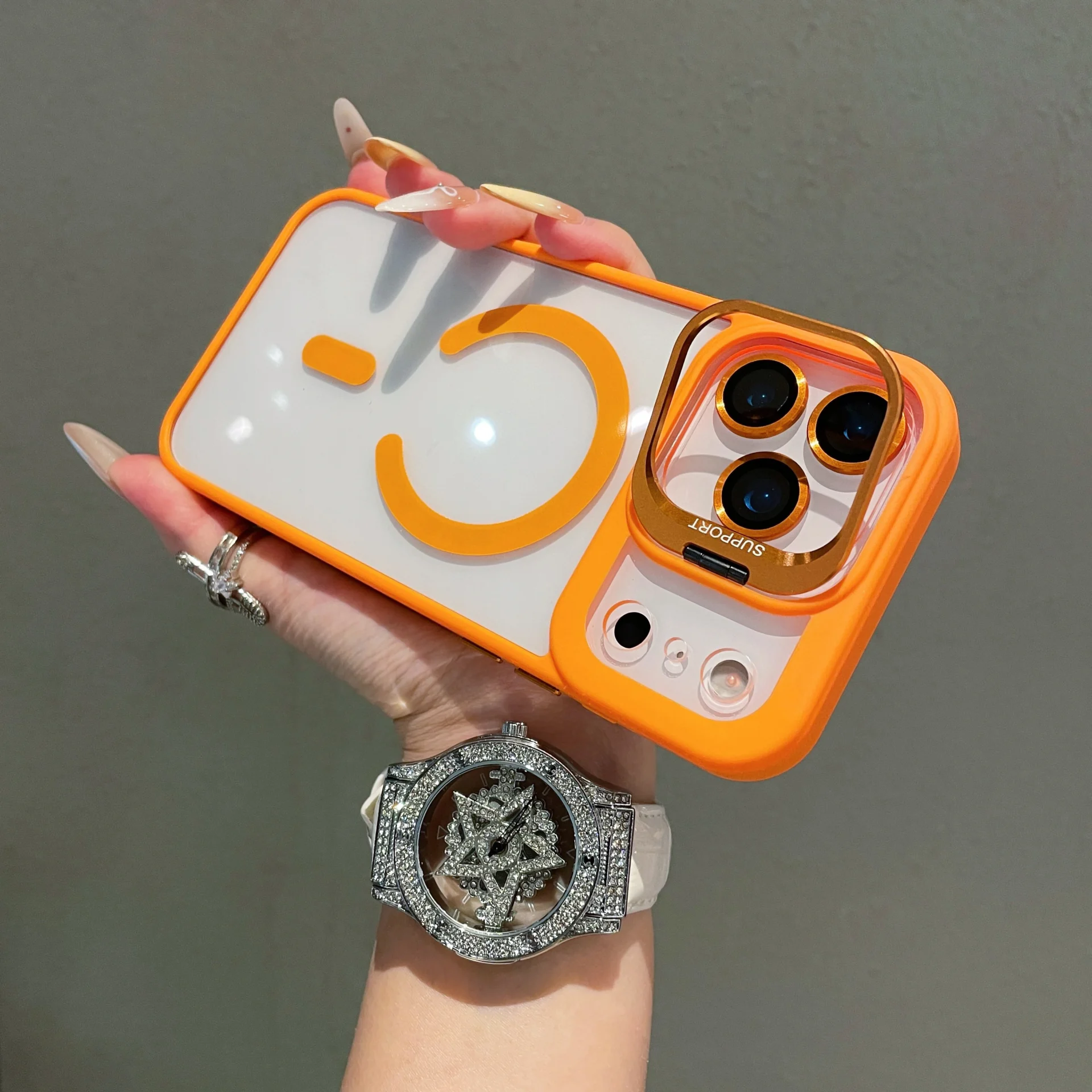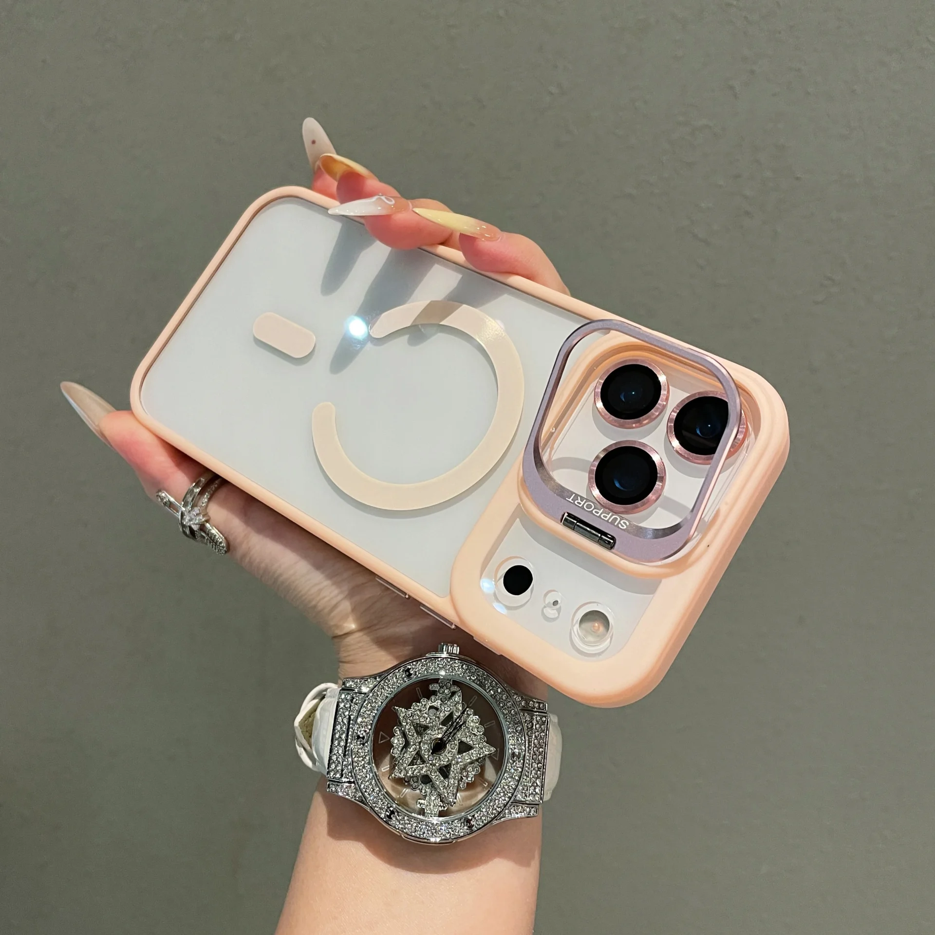 Transparent Case For iPhone 17 Air 16 15 14 Plus 13 12 11 Pro Max For Magsafe Wireless Charge Camera Stand Holder Lens Cover