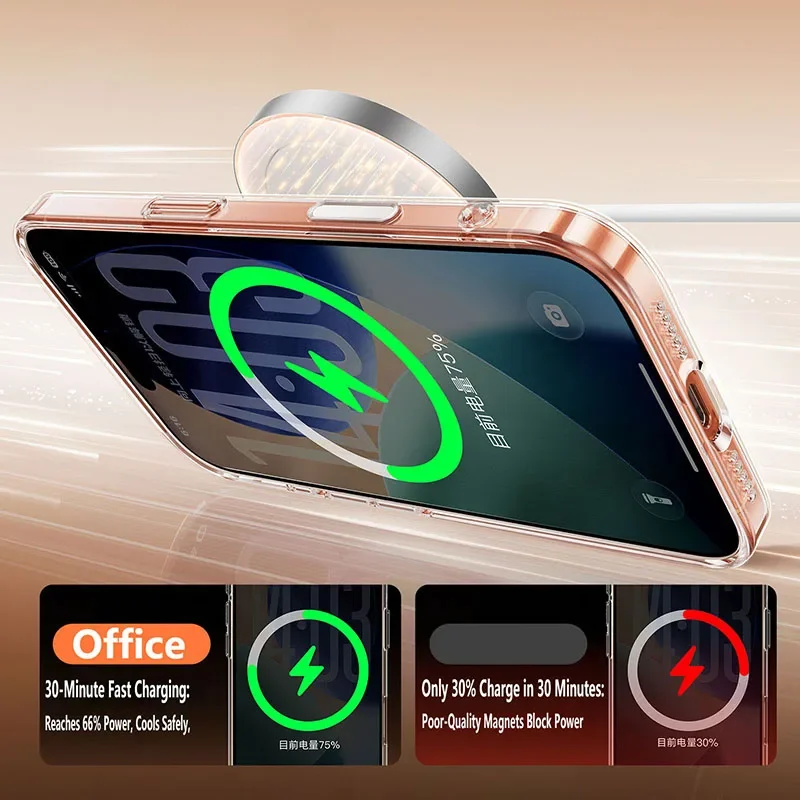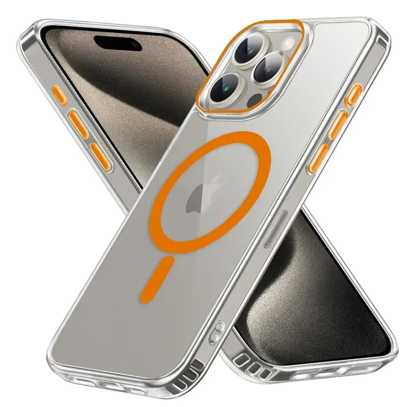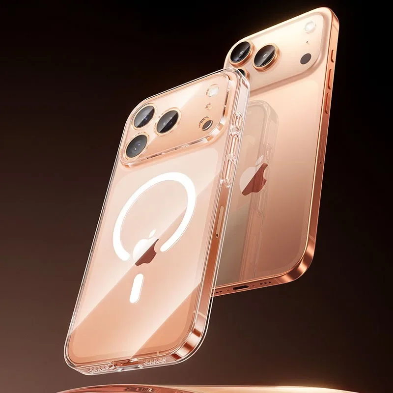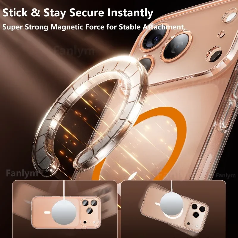 Transparent Phone Case For iPhone 17 16 15 14 13 Pro Max Plus 17 Air 16e Clear For Magsafe Magnetic Wireless Metal Button Cover