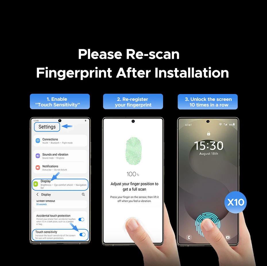 2. If the fingerprint is entered before applying the film. After applying the film, entering the fingerprint will also increase the fingerprint unlocking sensitivity.