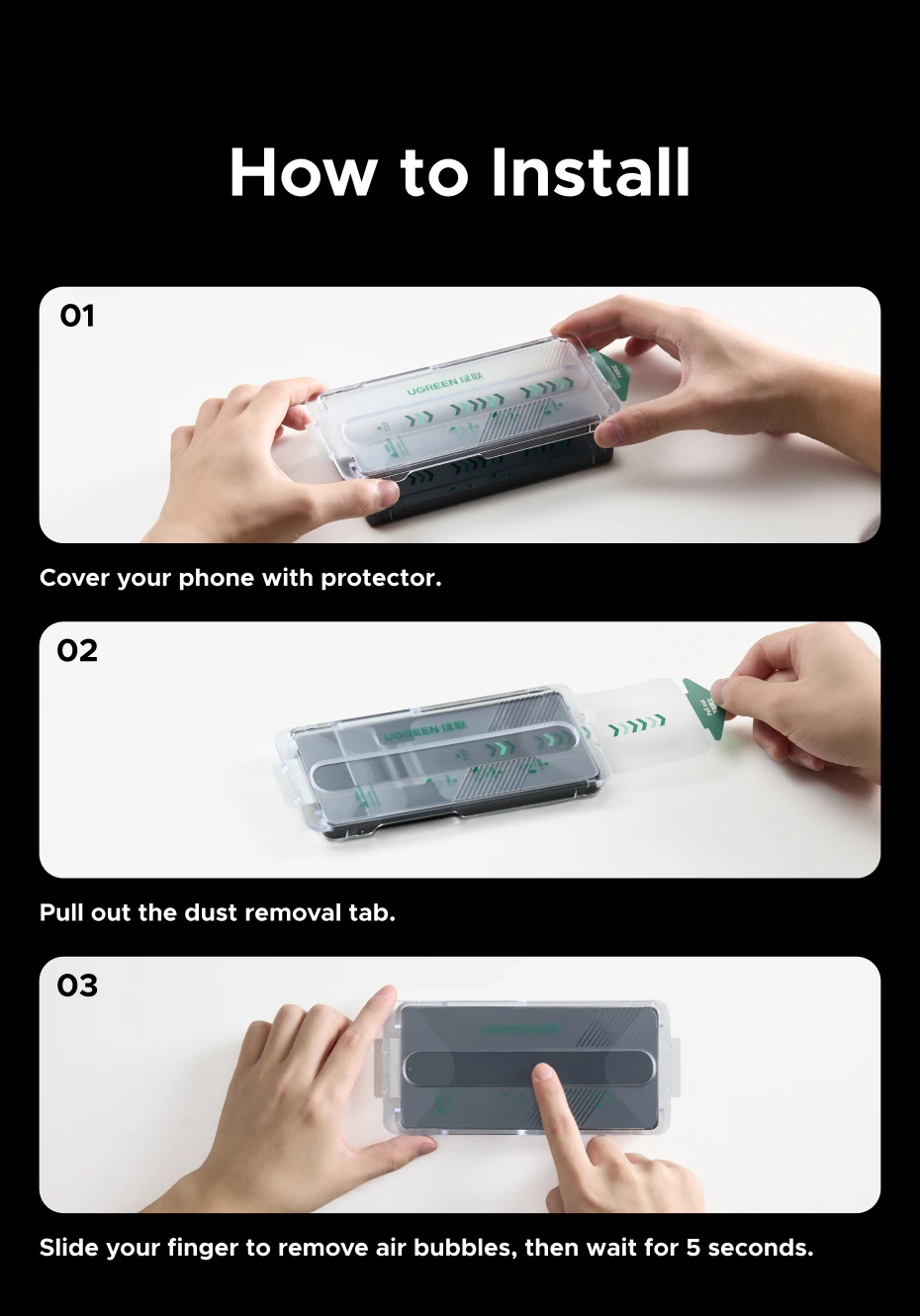 • Screen protector helper: Auto Installation Tool (hard Cover)