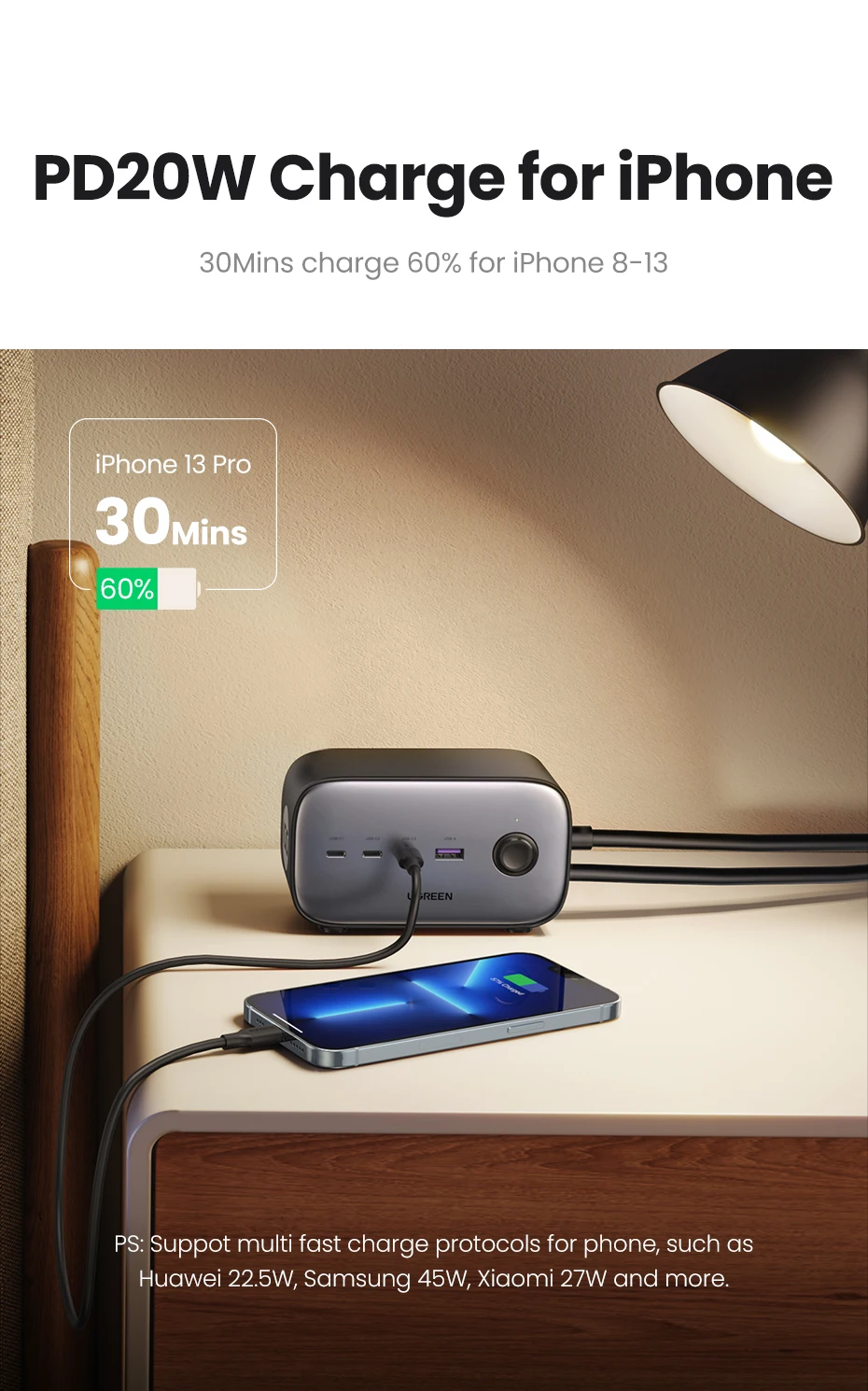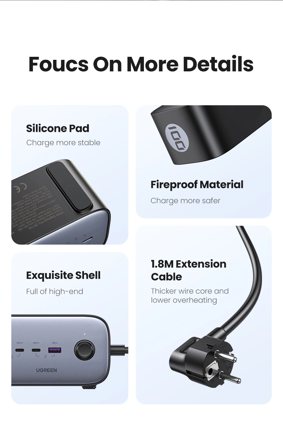 By innovatively utilizing GaN II chip to power strip, Ugreen DigiNest Pro Charging Station offers up to 95% conversion rate, better heat dissipation and a more compact size.