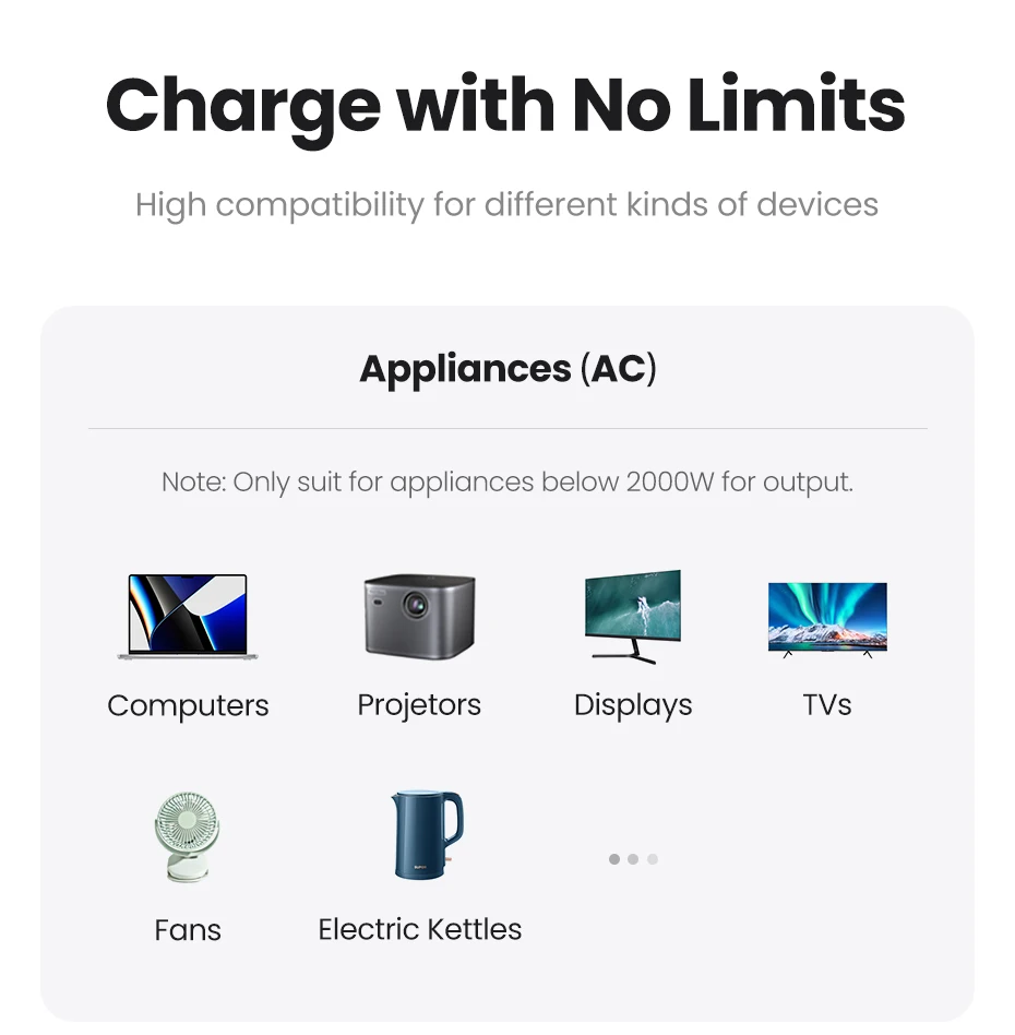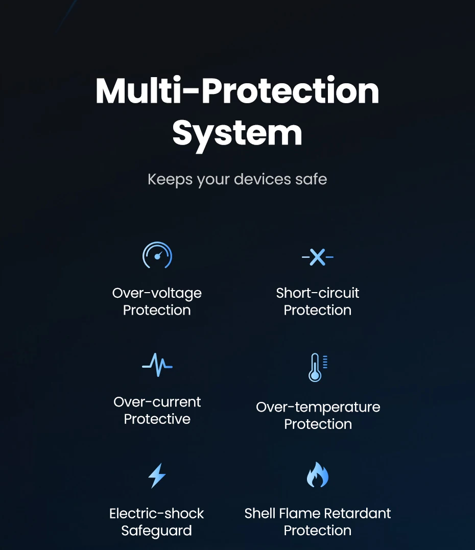 Get a variety of protections like overload, overcurrent and grounded protection, along with many other security features. Charge your devices with peace of mind.