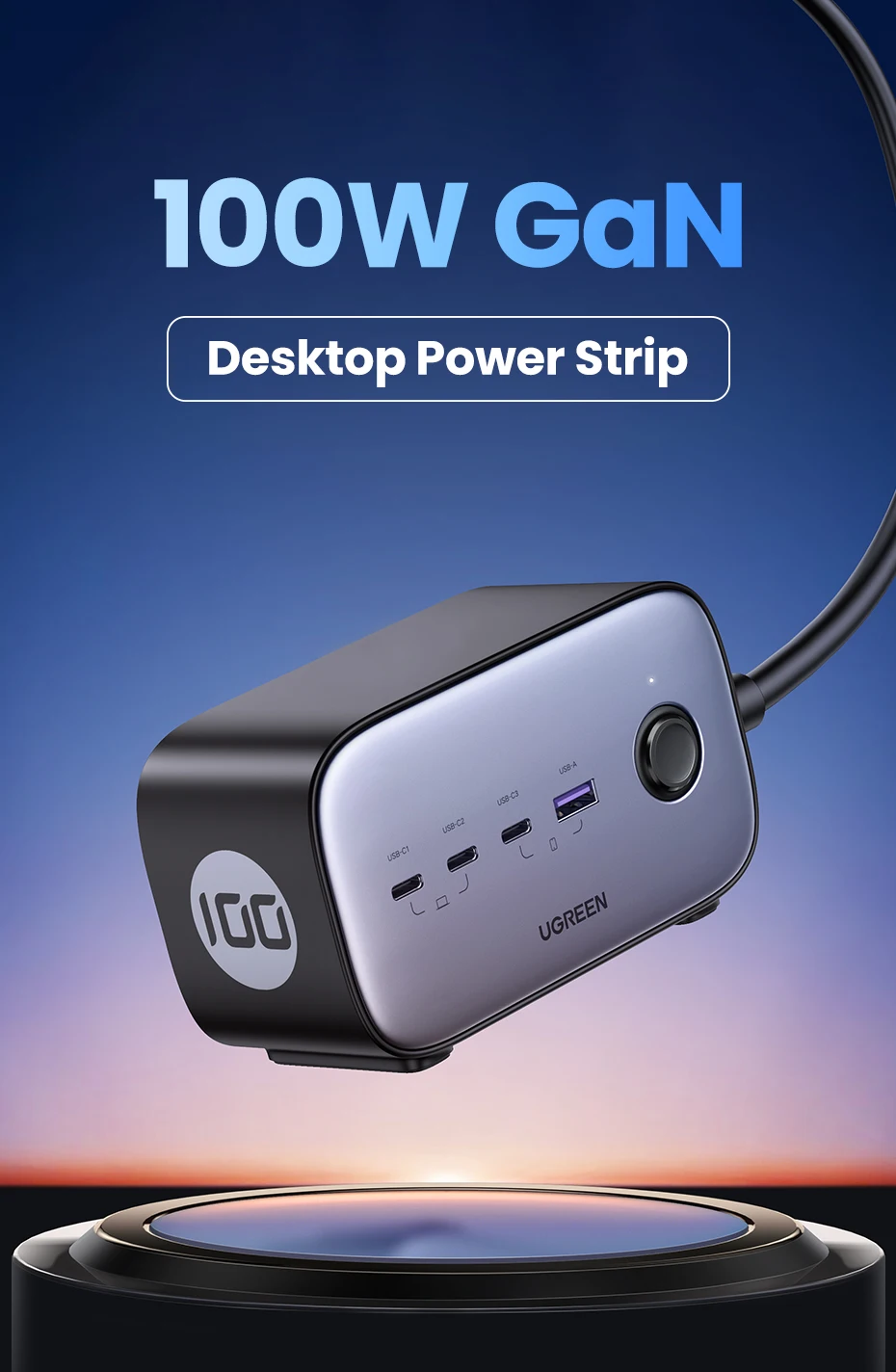 UGREEN 100W Fast GaN Desktop Charger Power Strip Charging Station Fast Charger For Laptop Macbook iPhone 17 16 Pro Phone Charger
