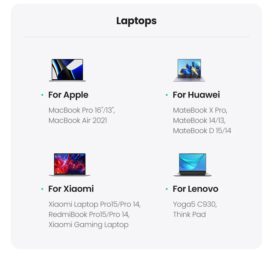 | Plug Type | 100W EU Plug, 100W UK Plug, 65W EU Plug, 65W UK Plug |