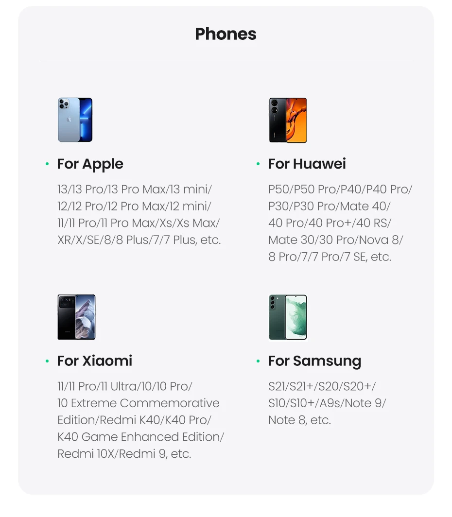 - Applied Fast Charge Protocols: Samsung Adaptive Fast Charge,Huawei FCP,USB PD,Qualcomm Quick Charge,Huawei Quick Charge