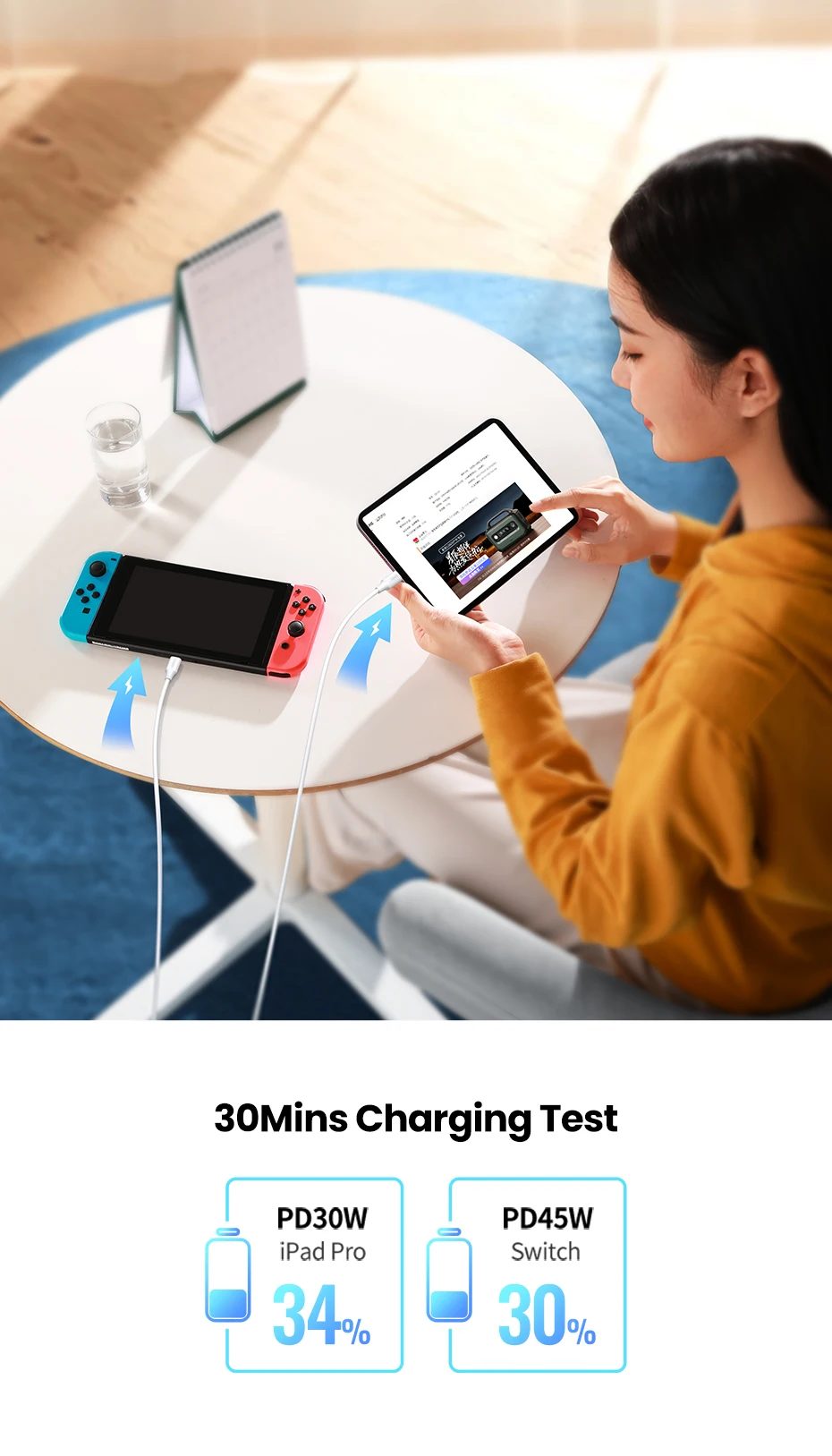 Note: Please equip with original 100W charging adapter for the fast speed charging