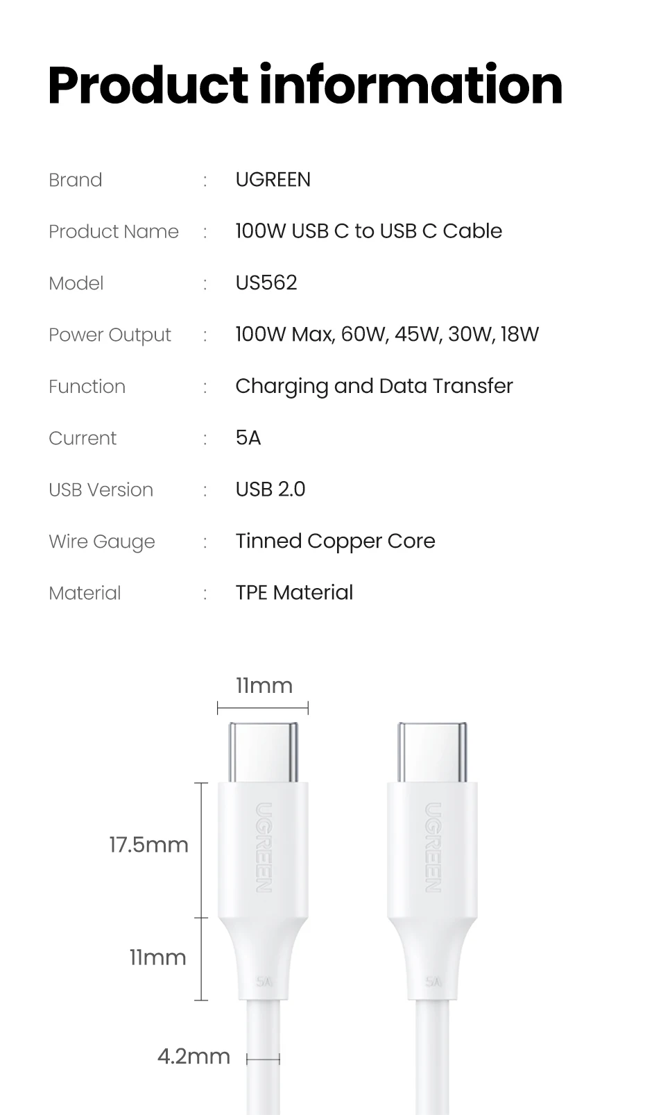 - Product Name: 100W USB C to USB C Cable